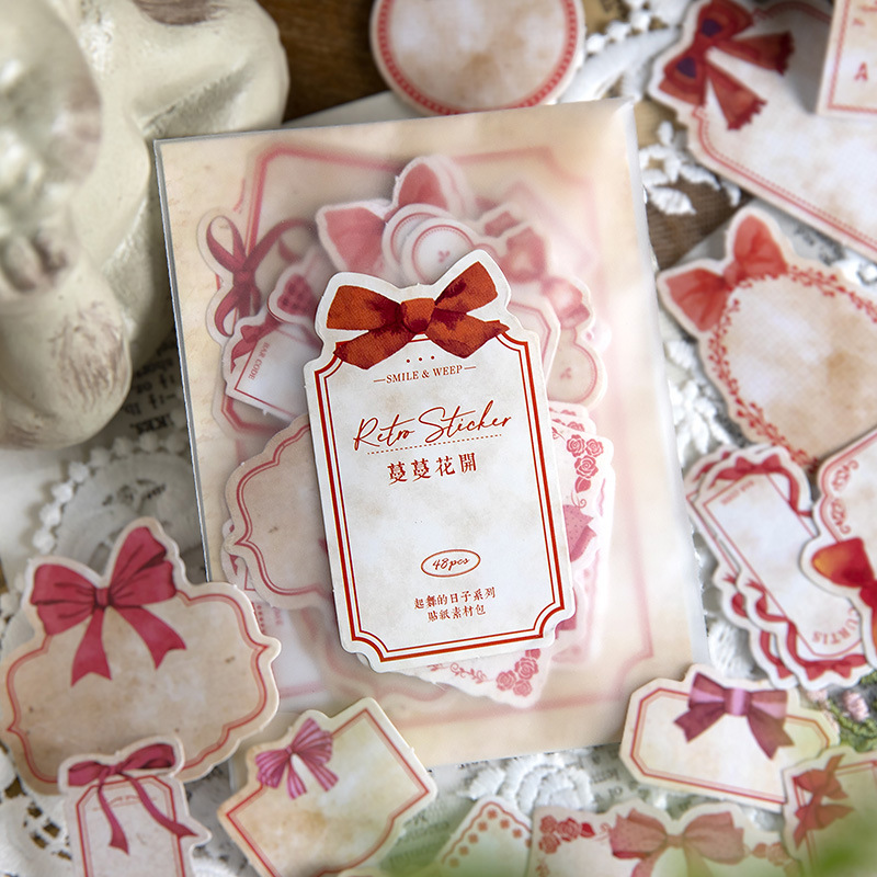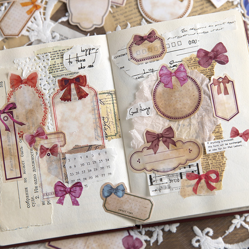 言己素材贴纸包 起舞的日子系列 清新文艺蝴蝶结手帐DIY拼贴画8款