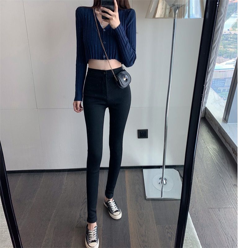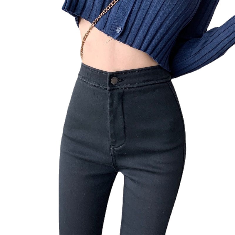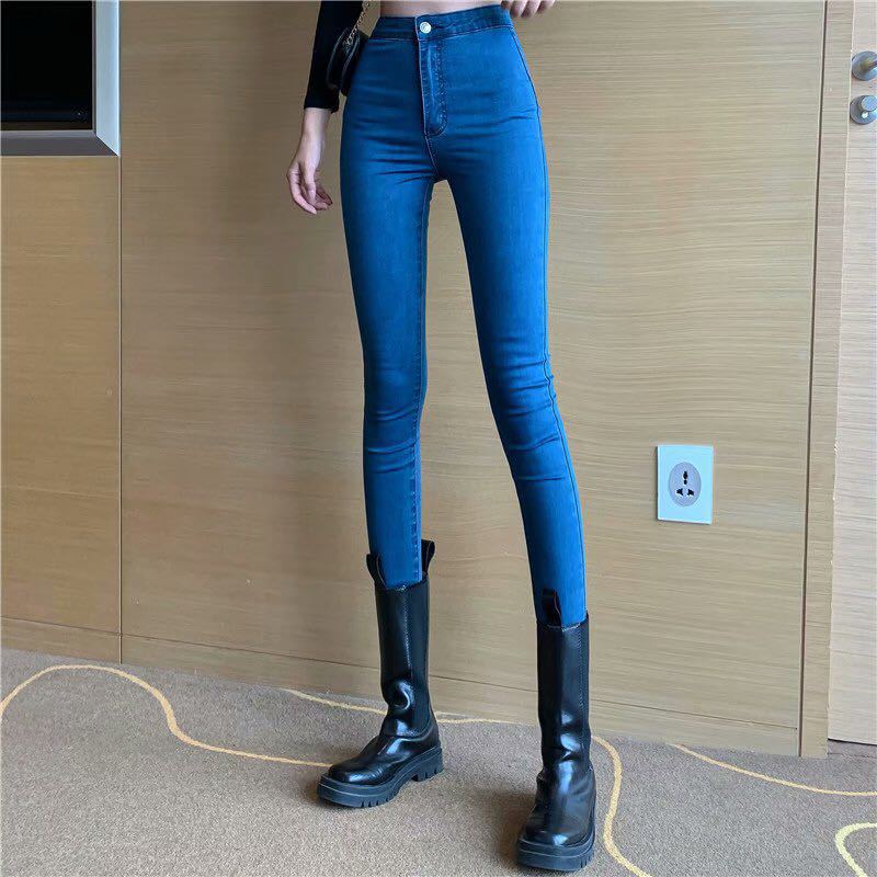 紧身小脚浅蓝色牛仔裤女春秋季chic高腰女士显瘦弹力九分铅笔裤女