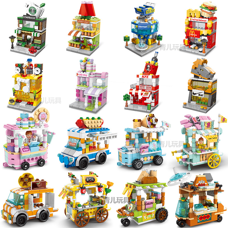 乐乐兄弟儿童拼装城市迷你街景小颗粒启蒙拼装小吃美食街积木礼品