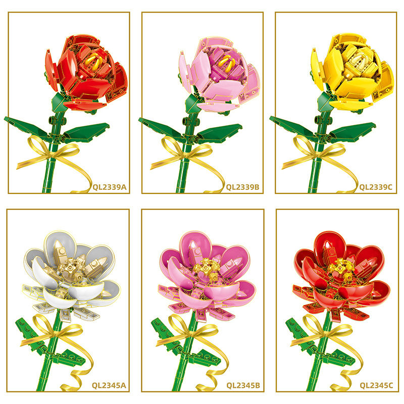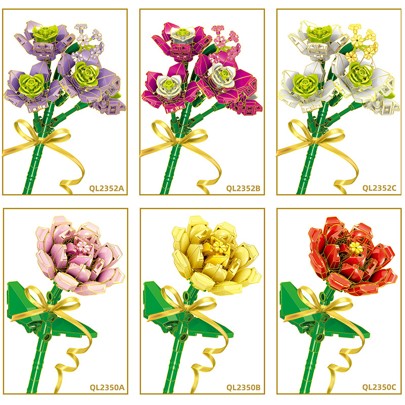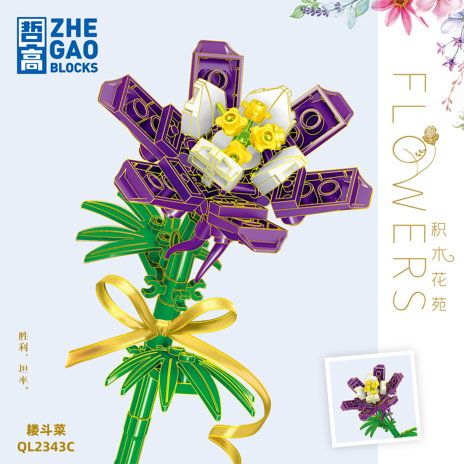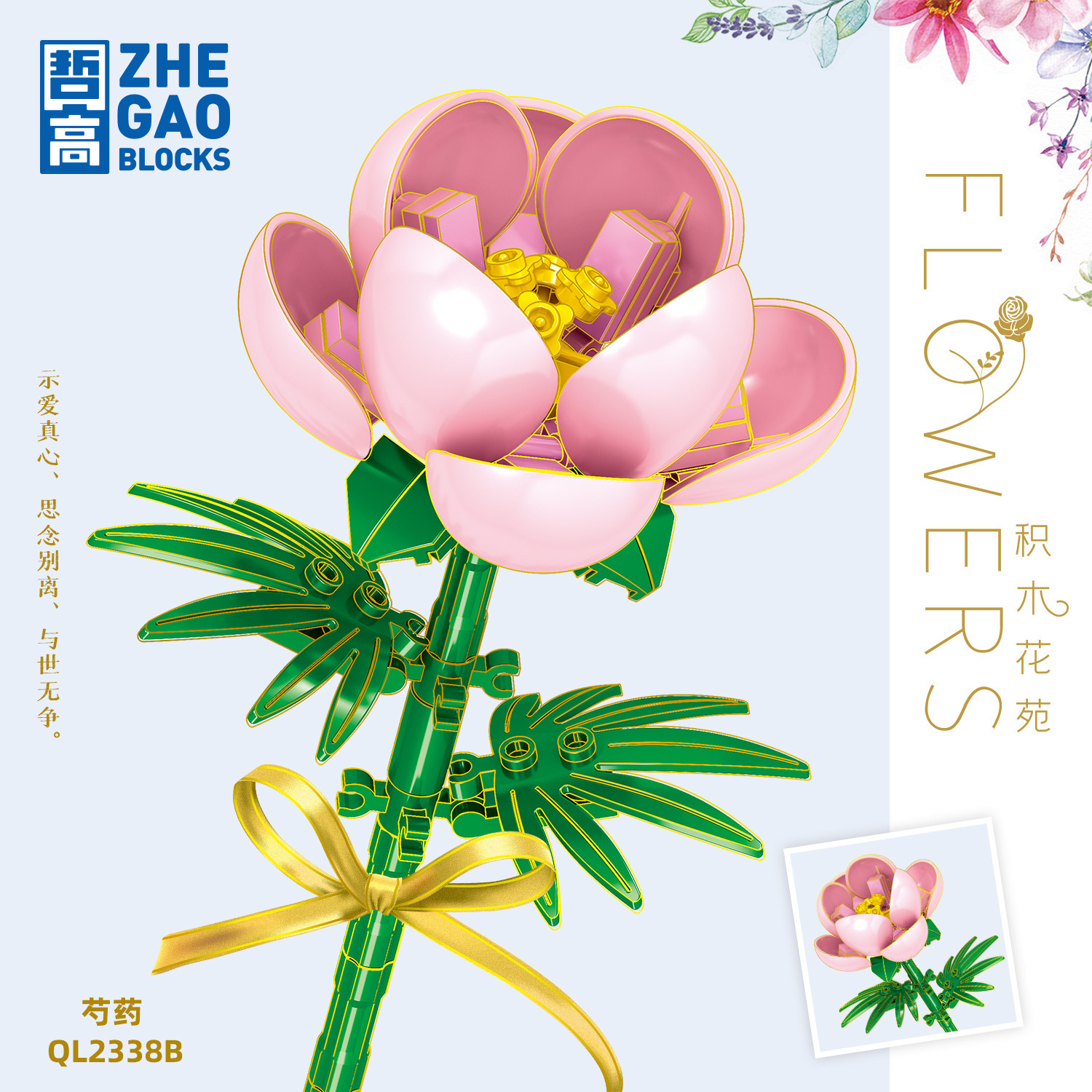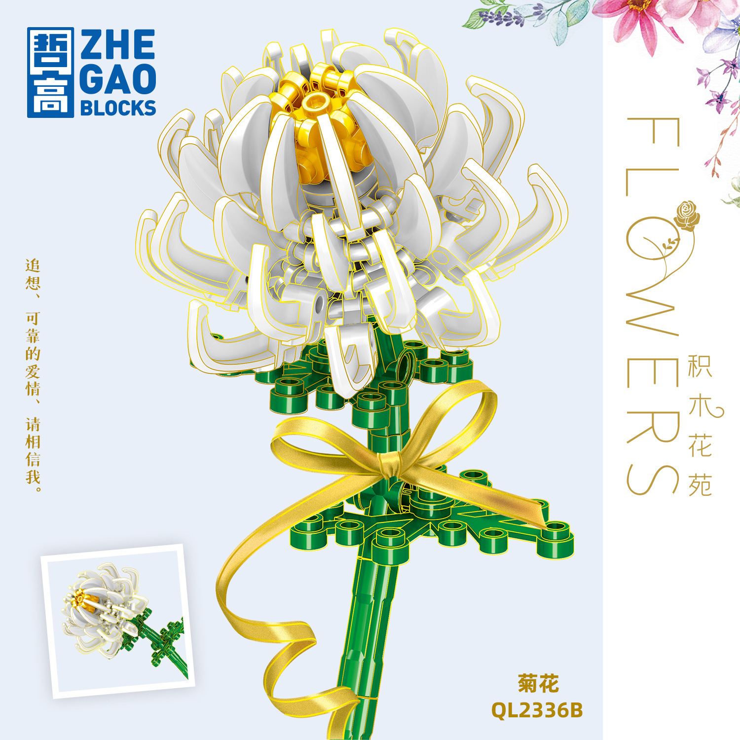 哲高QL2336花卉积木DIY创意鲜花拼装玩具花束玫瑰百合满天星菊花