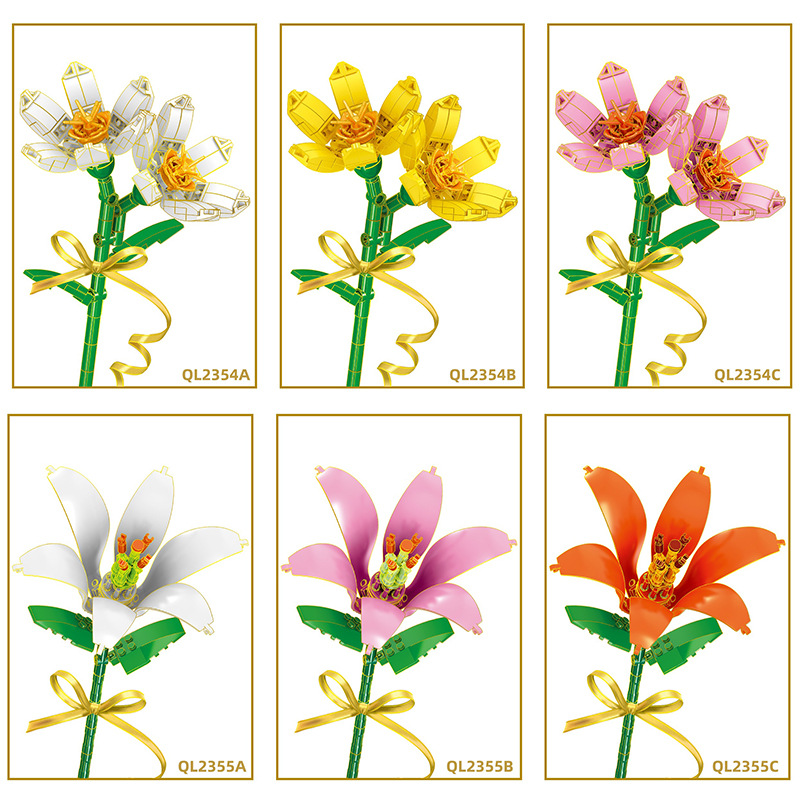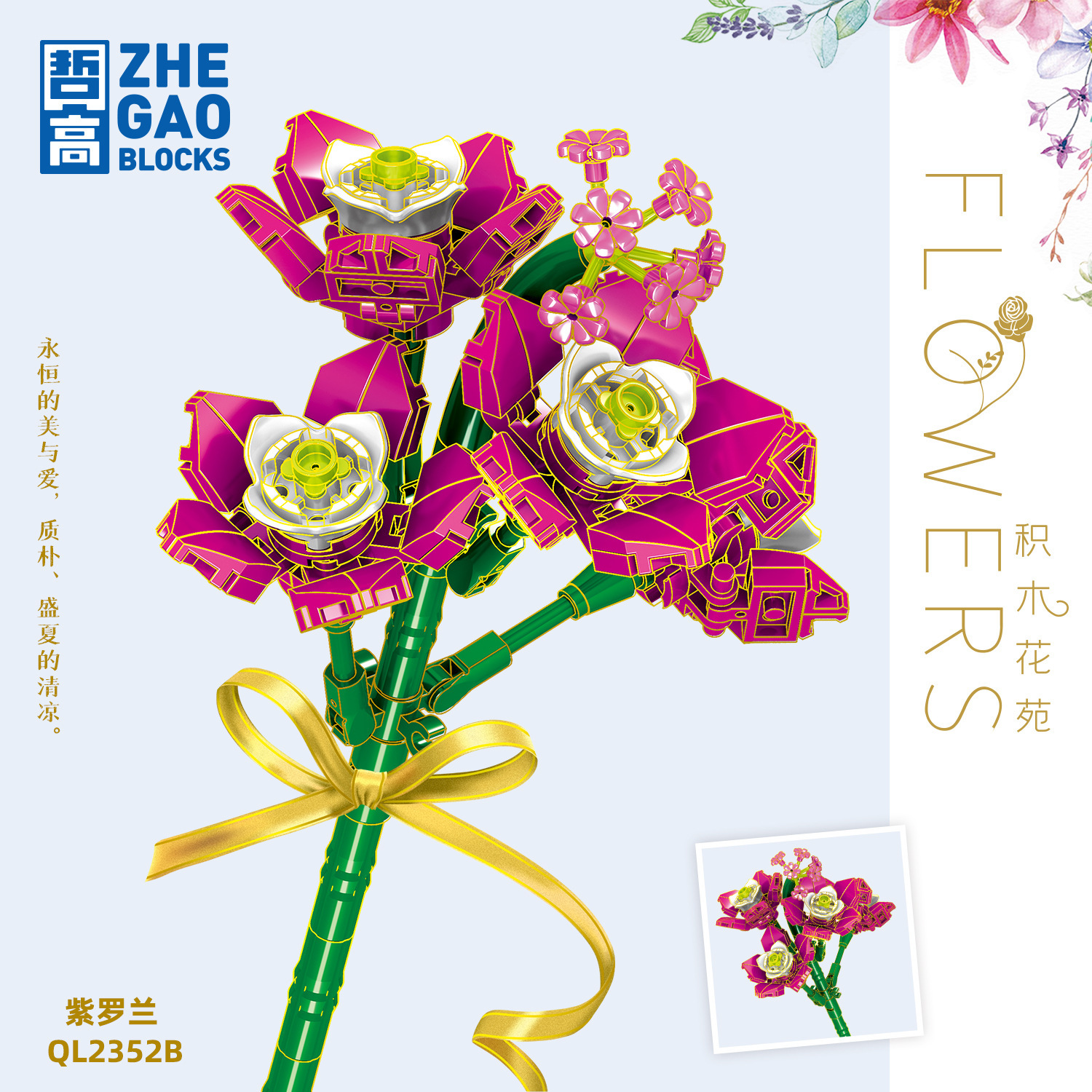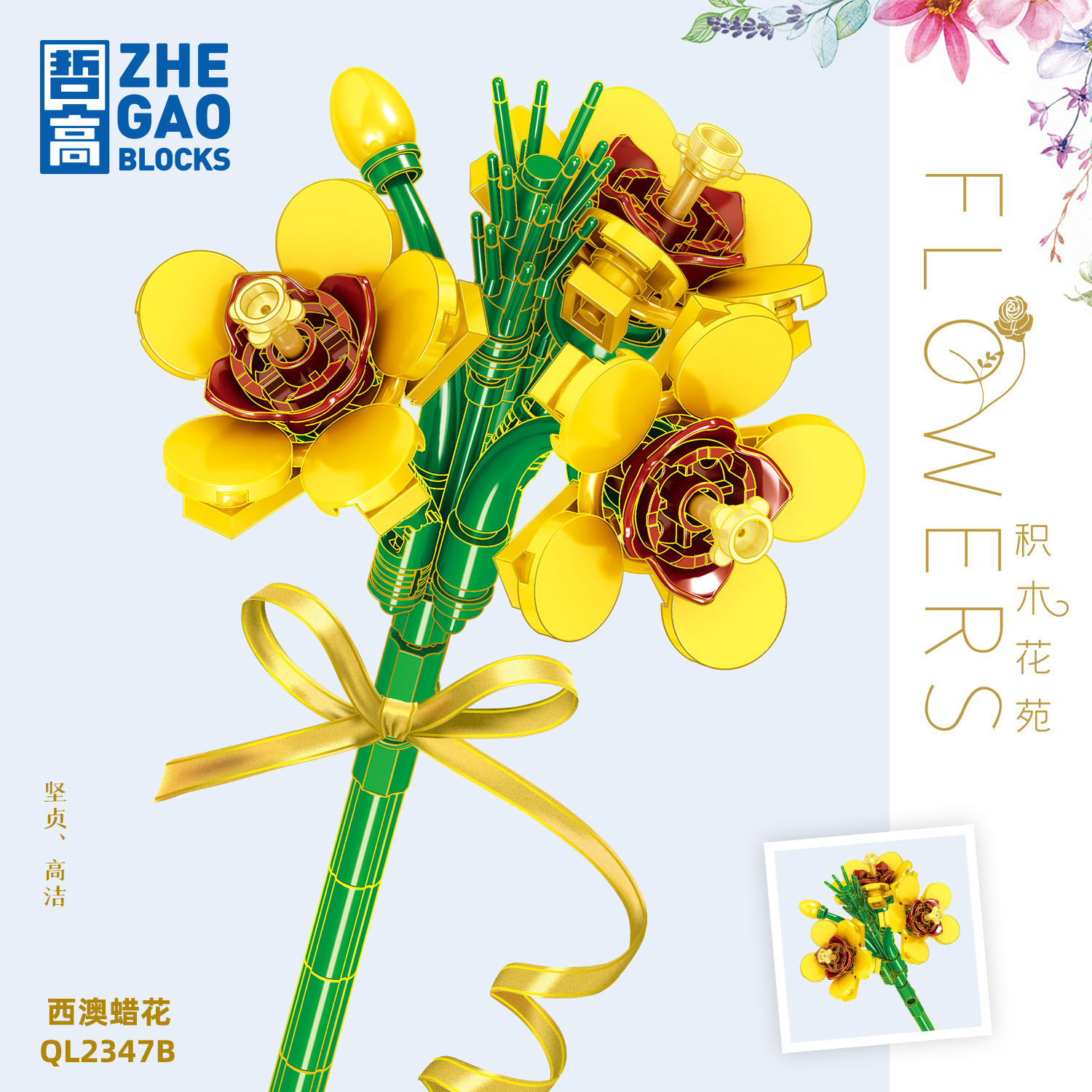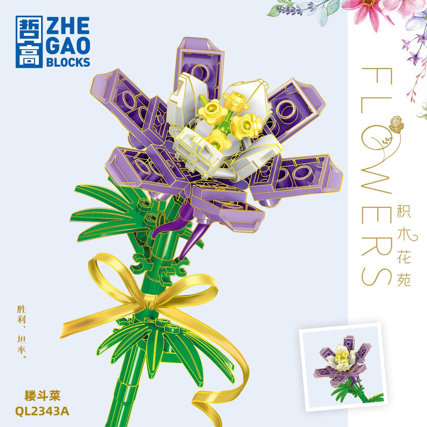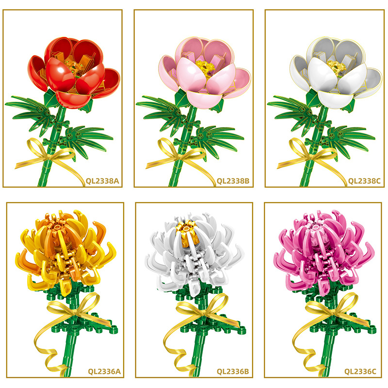 哲高QL2336花卉积木DIY创意鲜花拼装玩具花束玫瑰百合满天星菊花