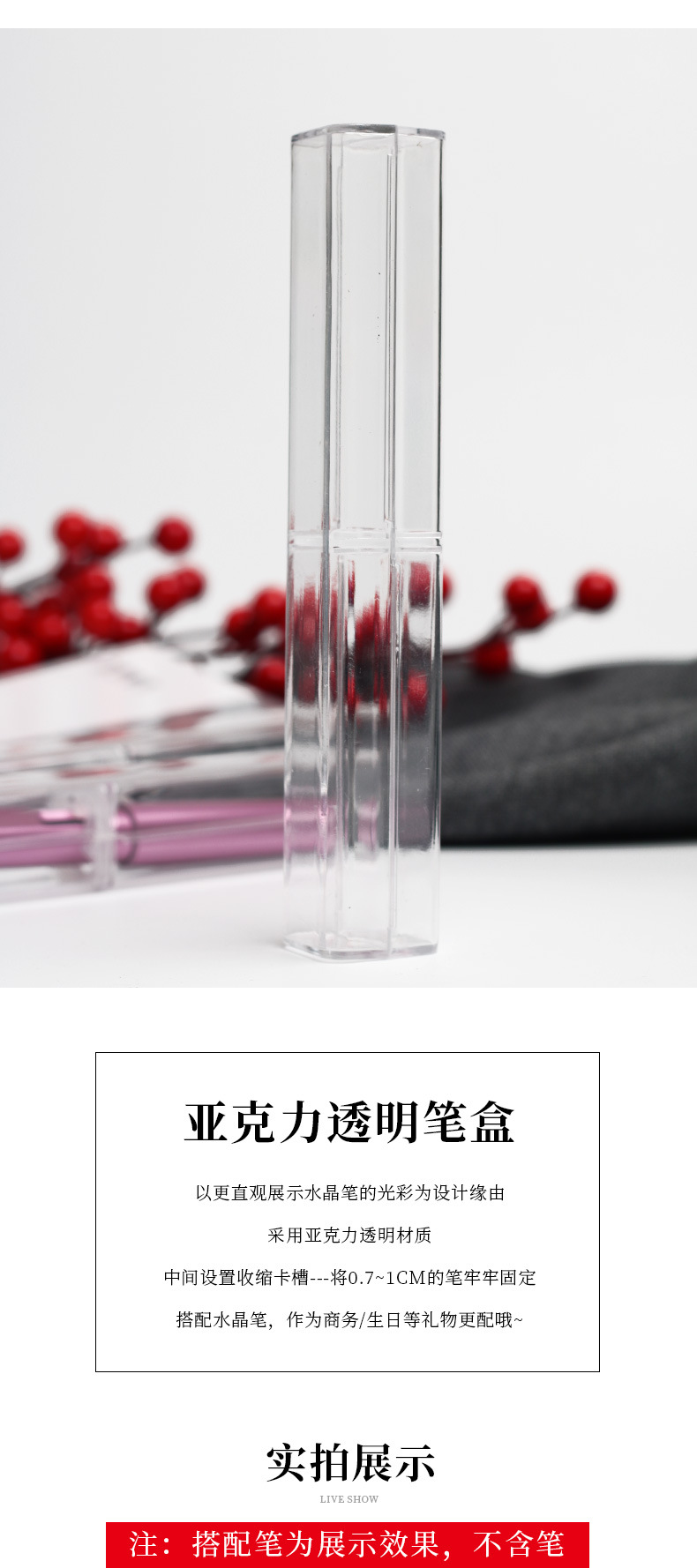 厂家批发PS透明方形铱金钢笔礼 亚克力笔盒学生钢笔套装礼盒
