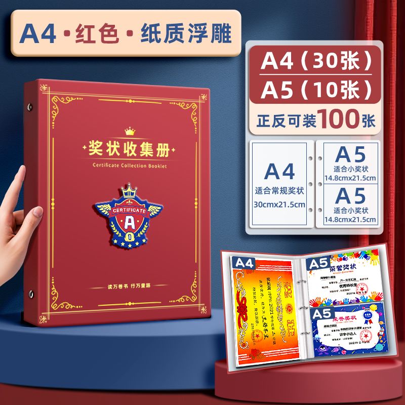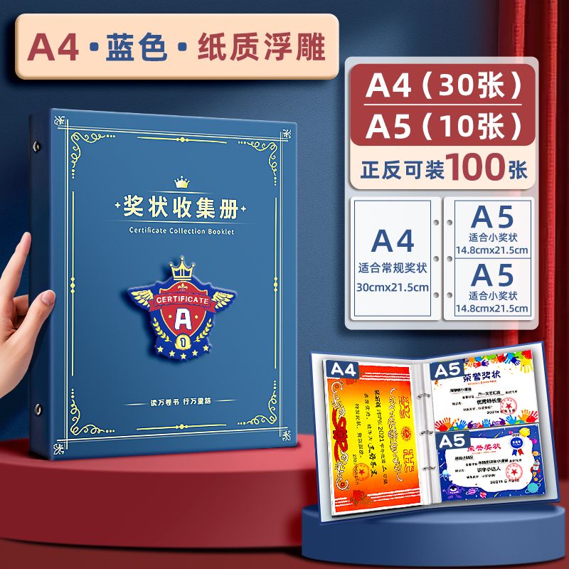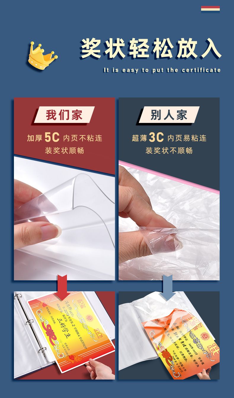 奖状收集册a4荣誉证书收集册文件夹活页学生收纳多功能资料册内页