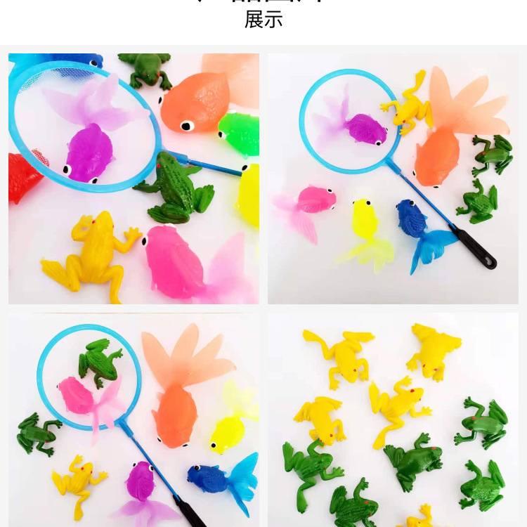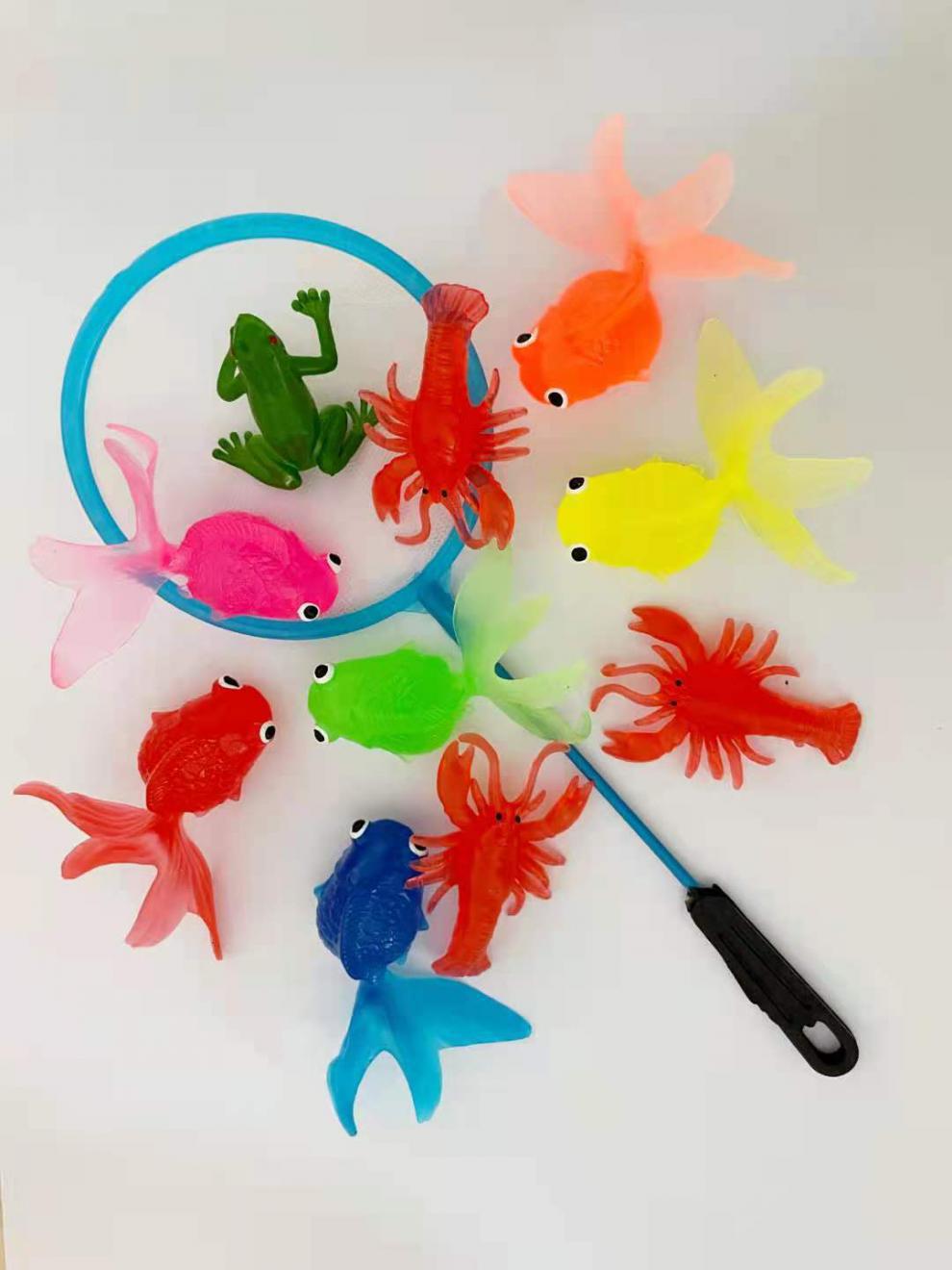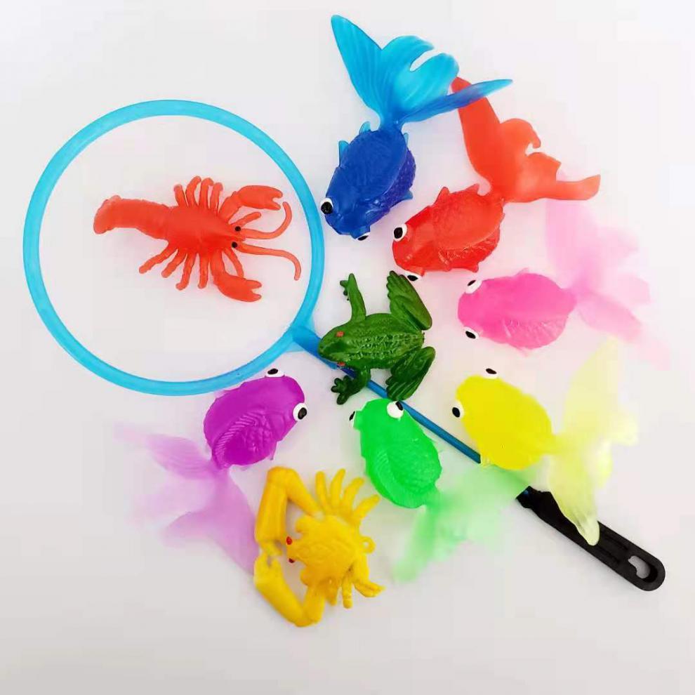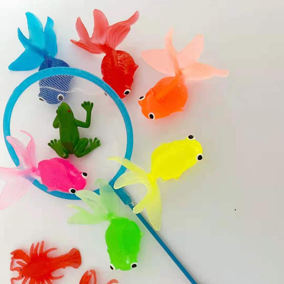 仿真动物夏季玩水玩具软胶金鱼洗澡玩具网兜捞鱼哄娃一件代发批发