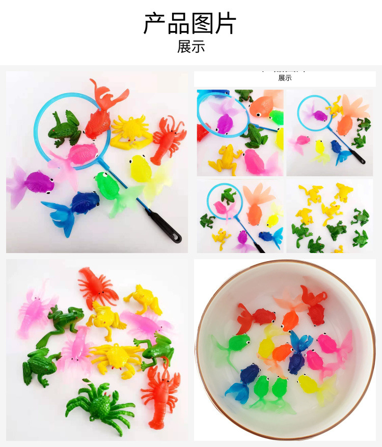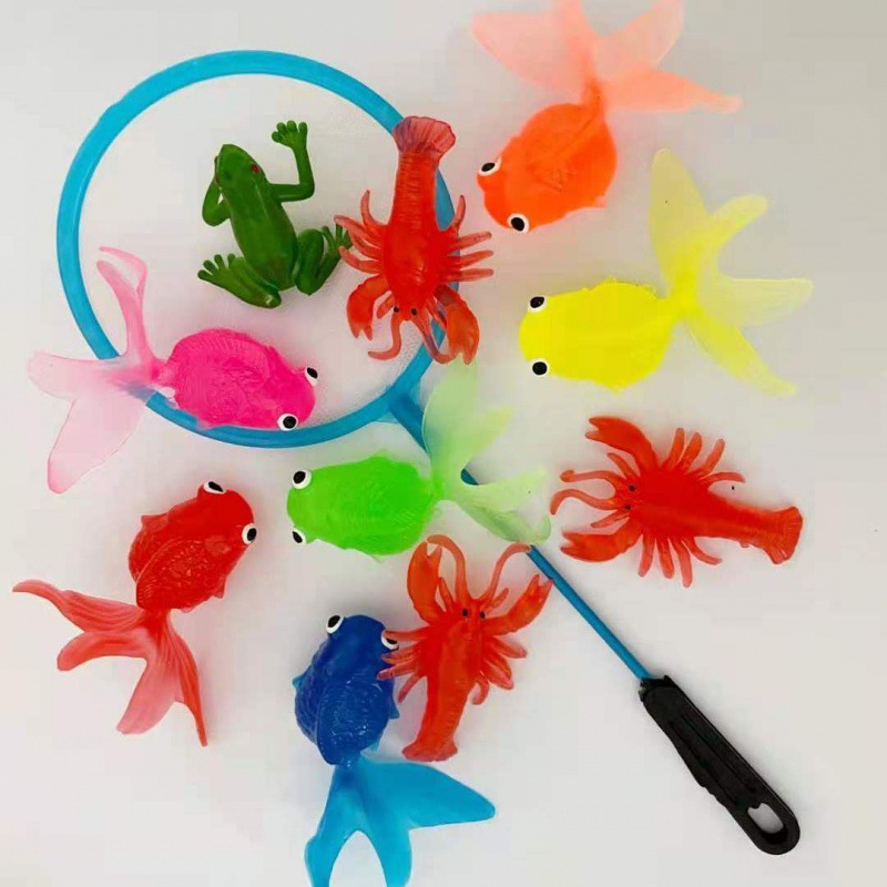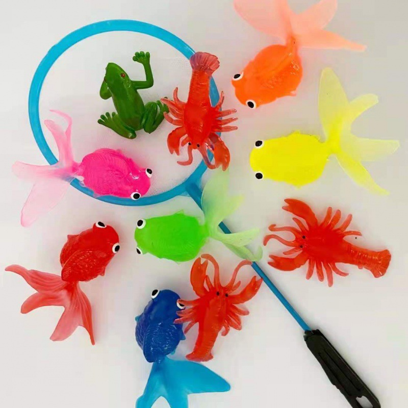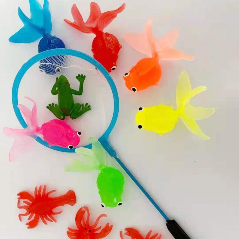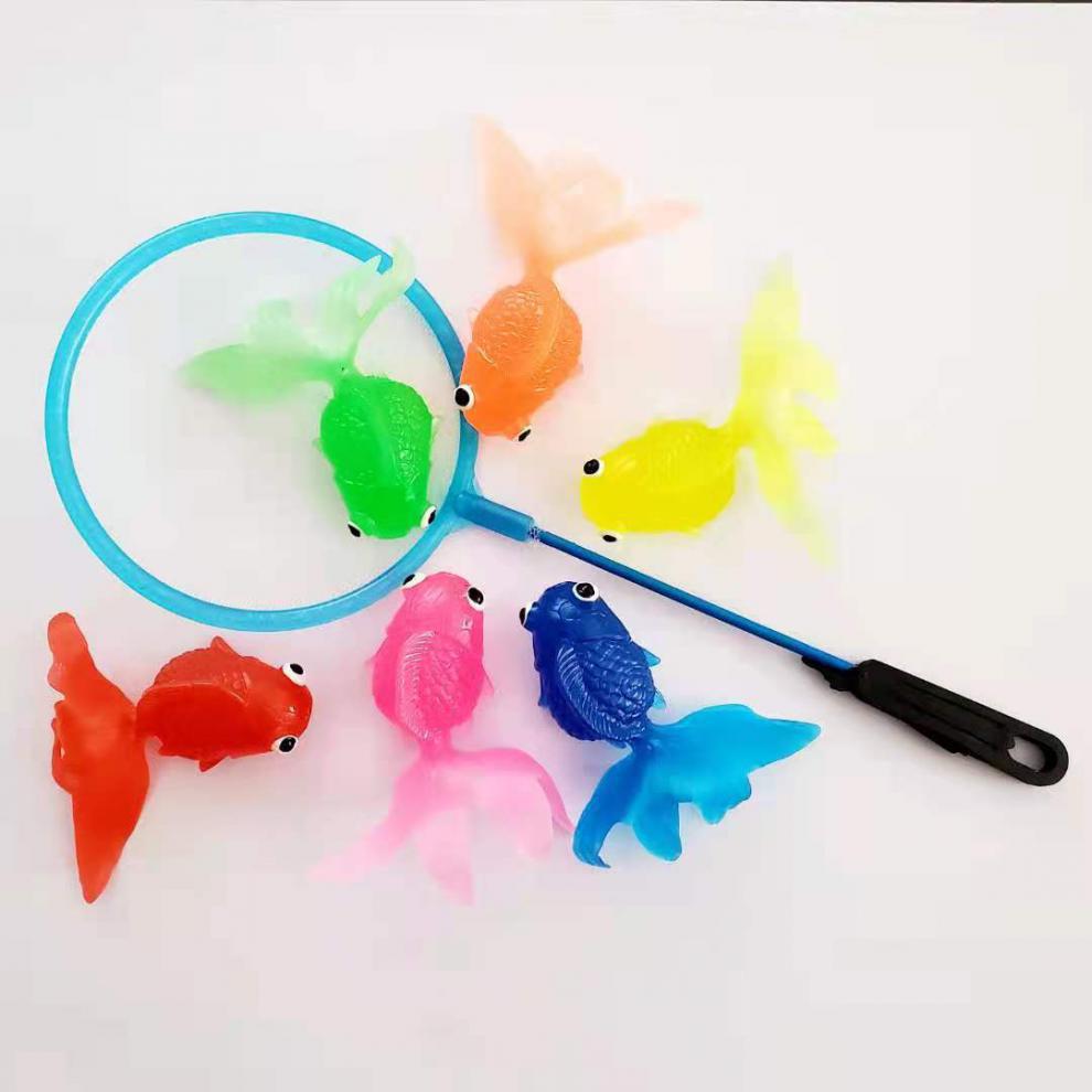 仿真动物夏季玩水玩具软胶金鱼洗澡玩具网兜捞鱼哄娃一件代发批发