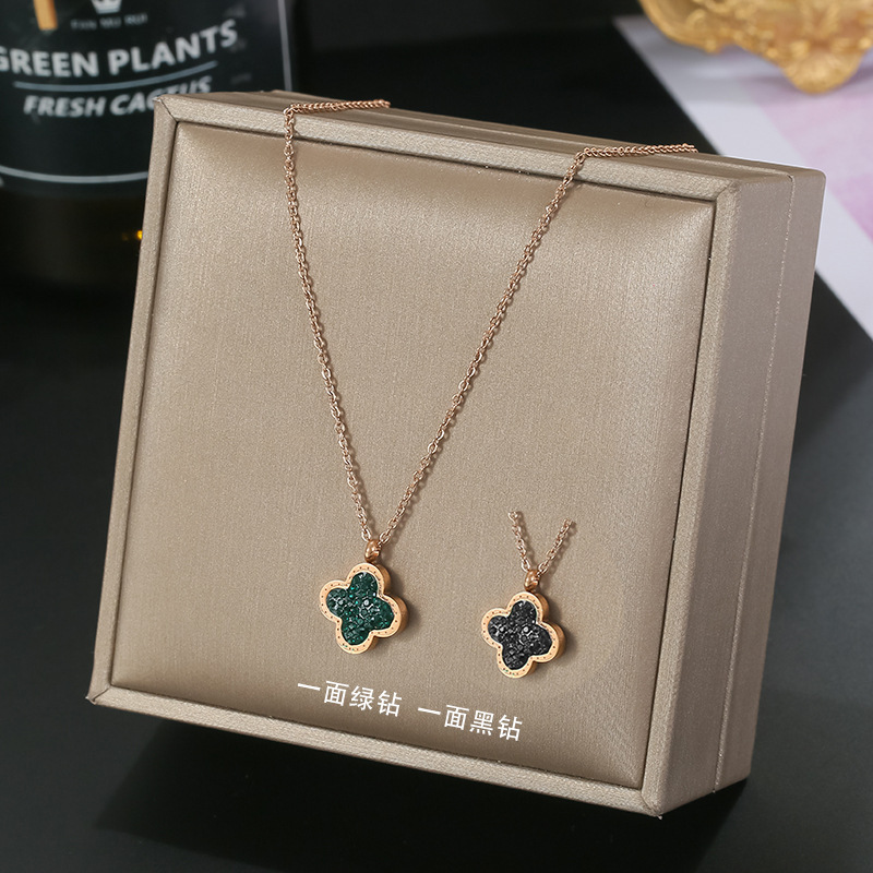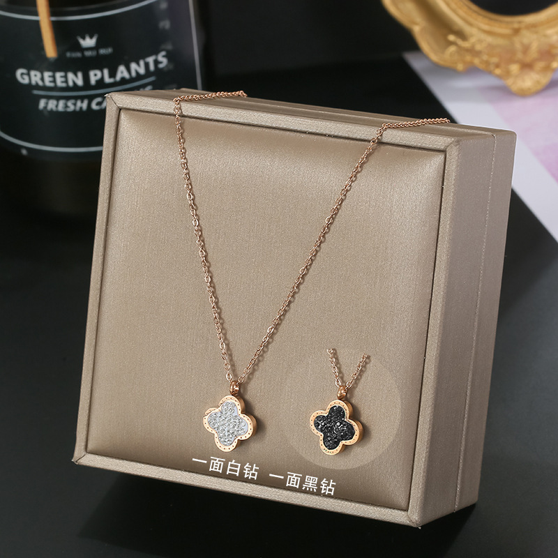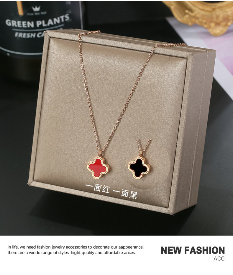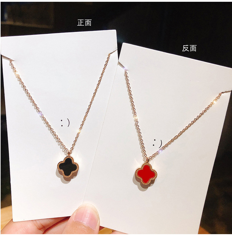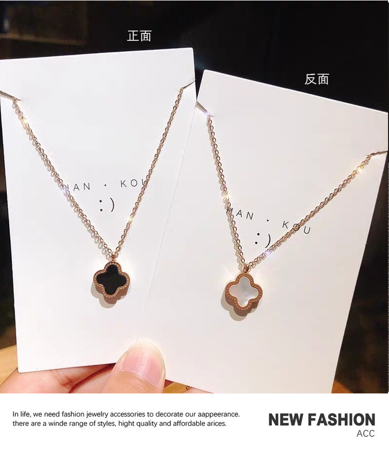 钛钢双面简约四叶草项链女ins潮经典贝壳吊坠网络爆款不掉色饰品