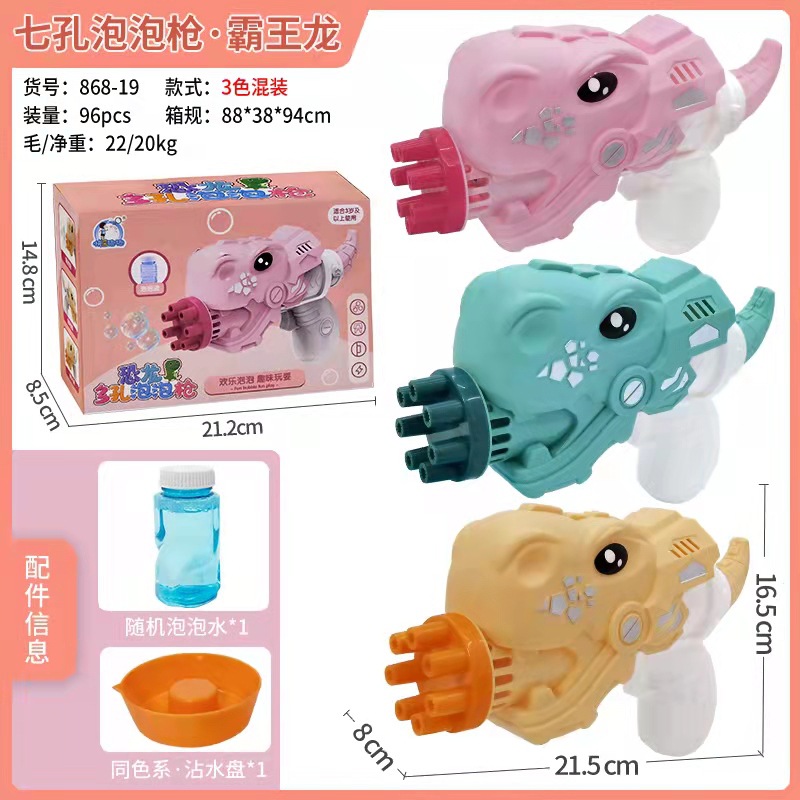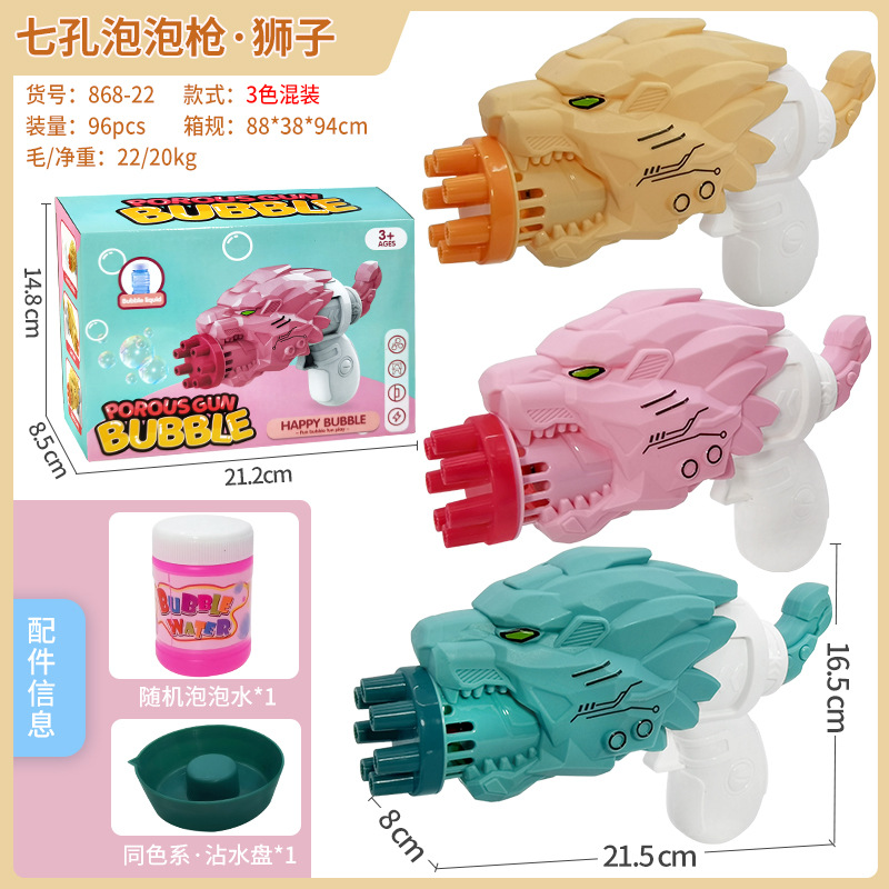 电动恐龙泡泡枪七孔泡泡机鲨鱼狮子抖音爆款卡通儿童玩具地摊批发