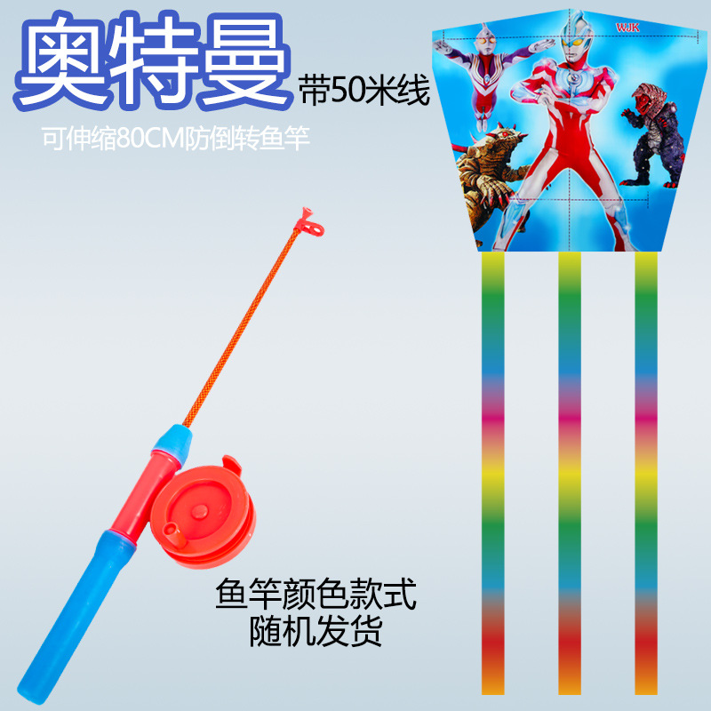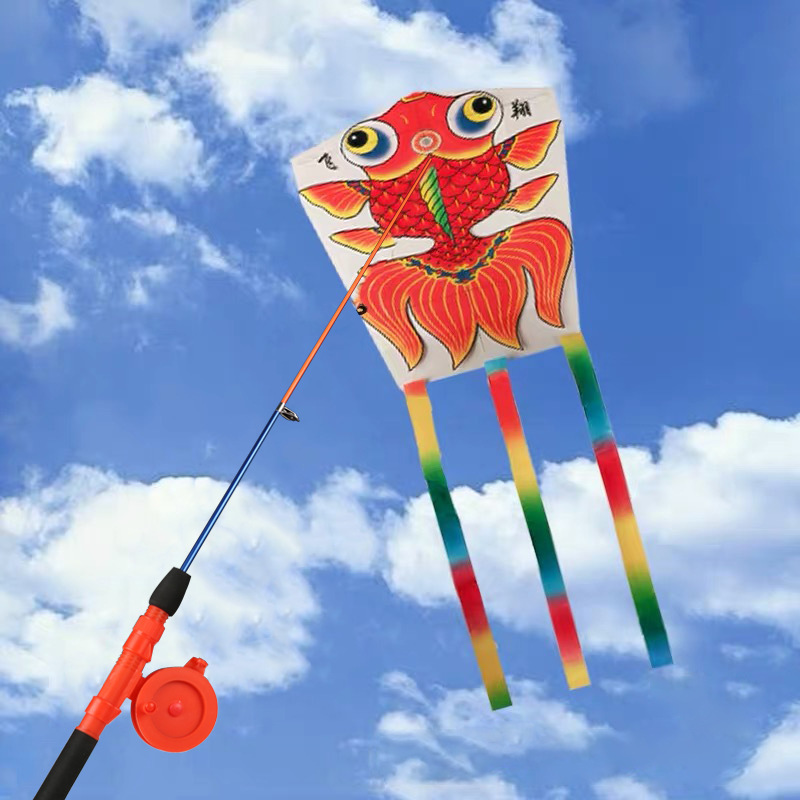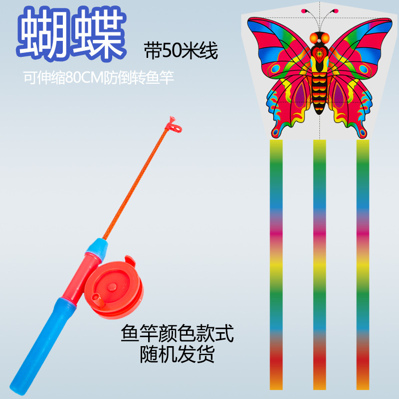 新款儿童手持鱼竿风筝批发微风易飞蝴蝶蜜蜂多种图案公园地摊网红