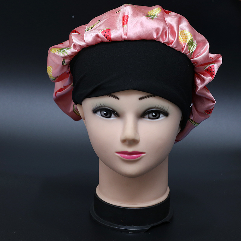 睡帽外贸宽边高弹仿真丝月子头巾女帽子护发帽子睡帽