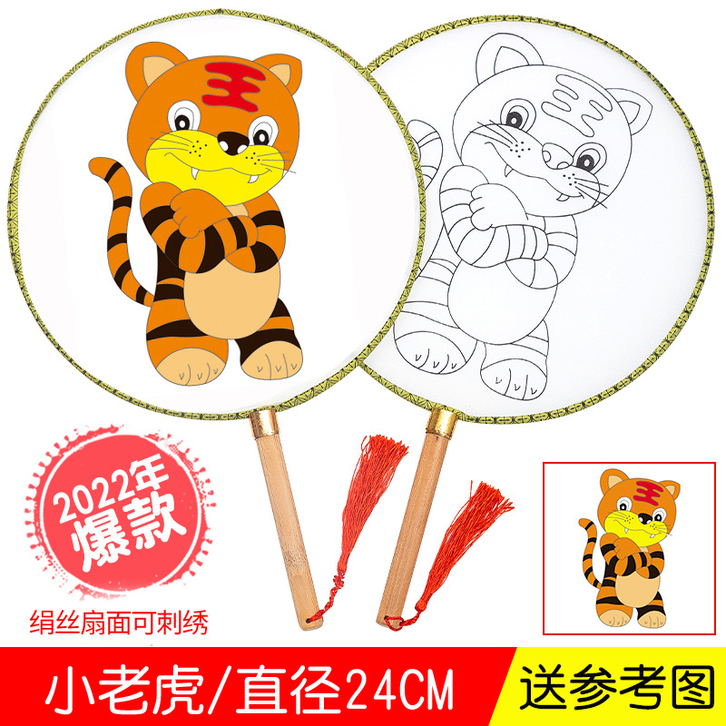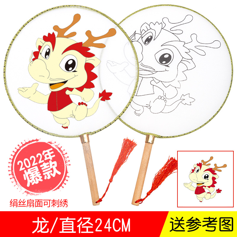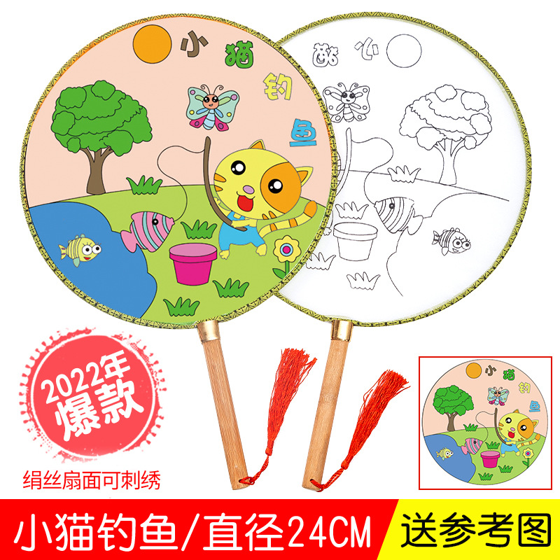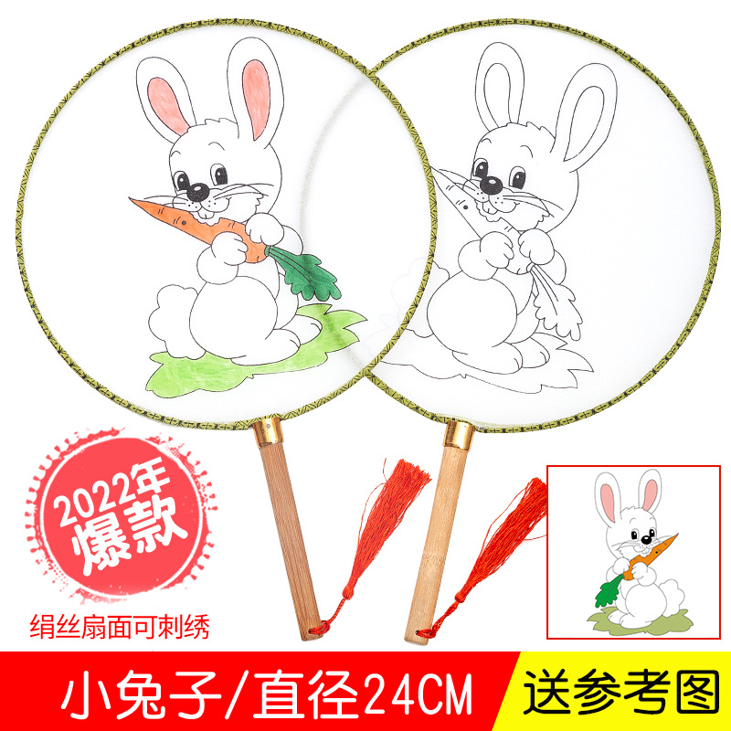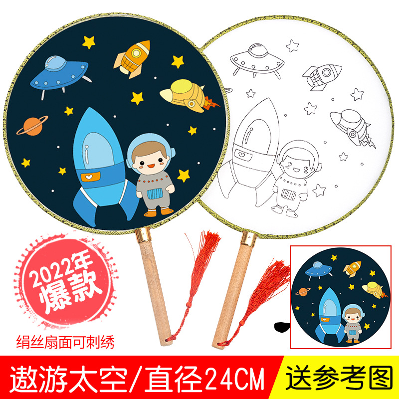 空白团扇diy材料包 儿童白色手工圆扇子绘画扇画画手绘扇面画宫扇