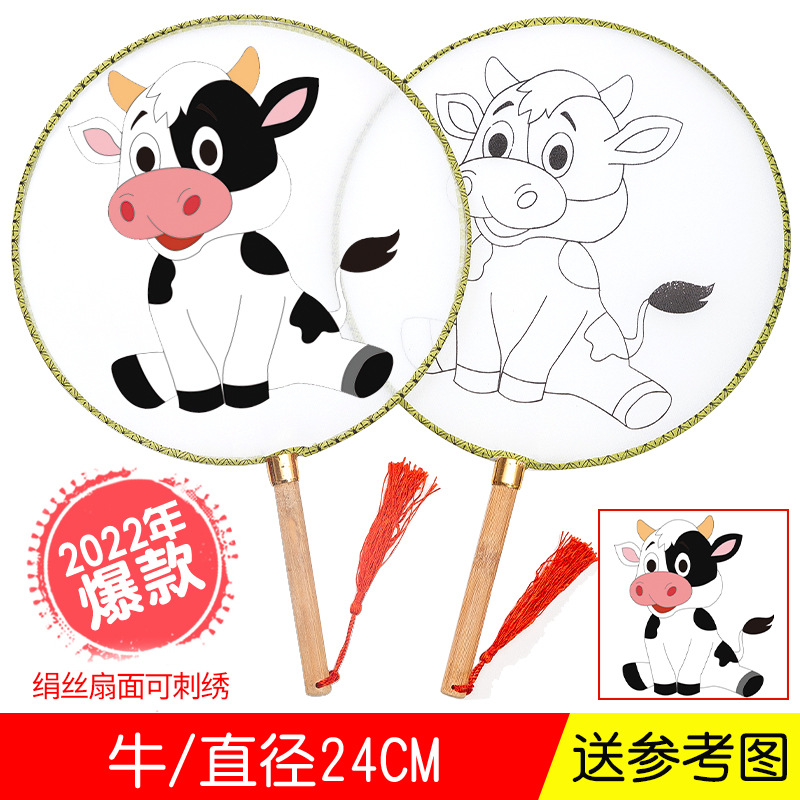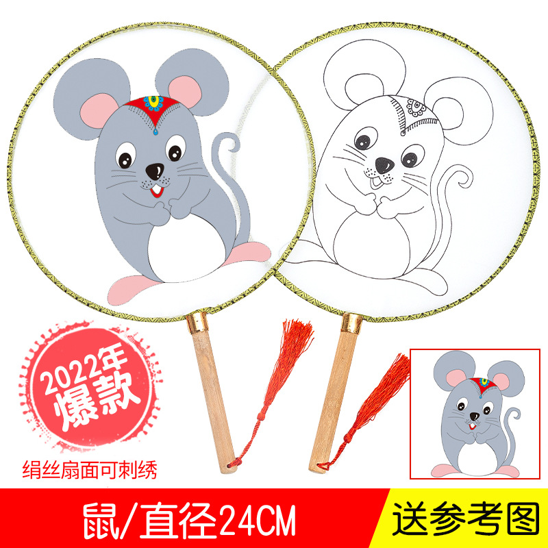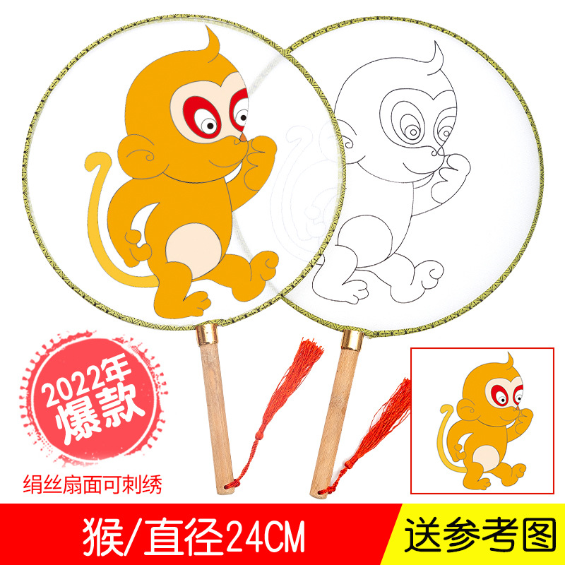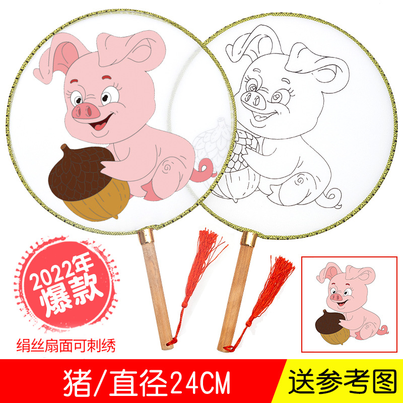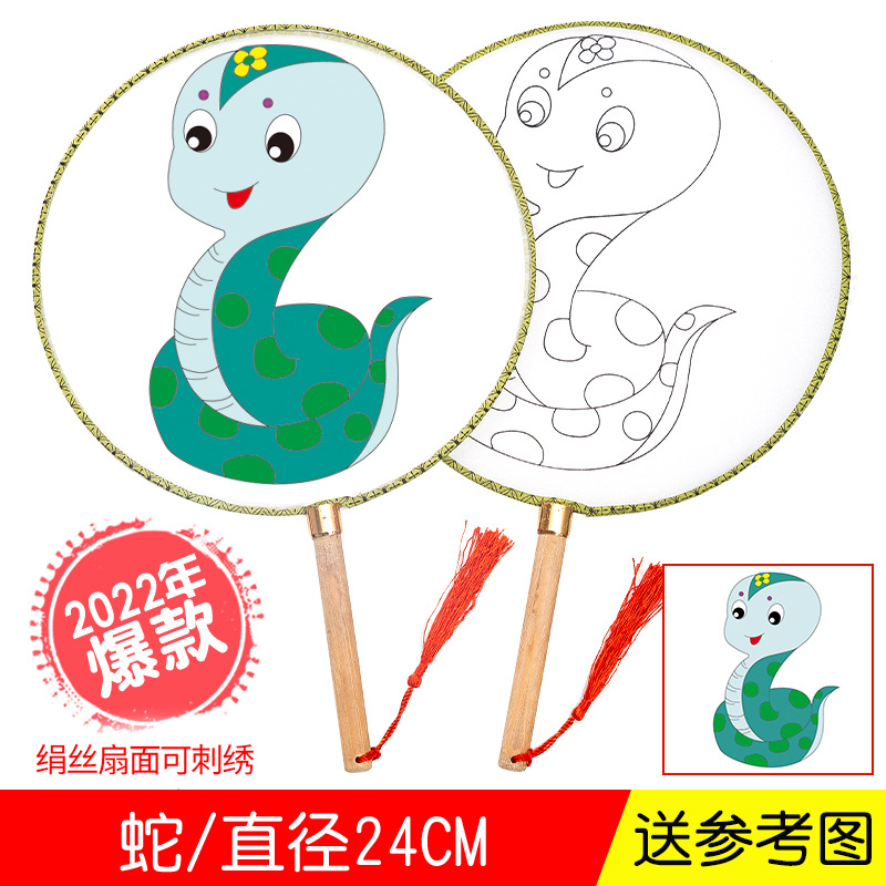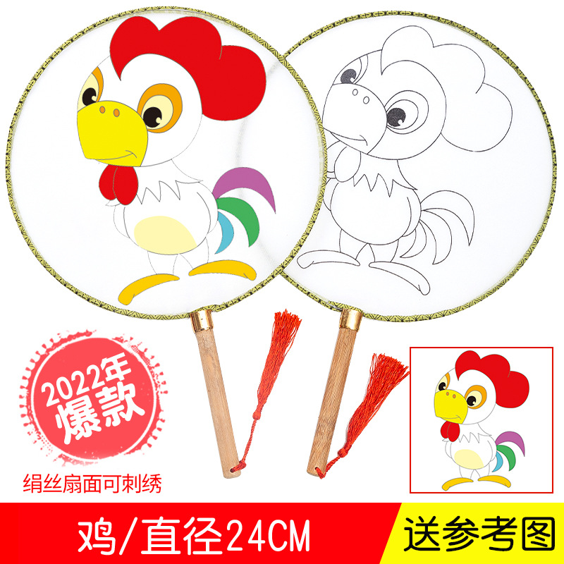 空白团扇diy材料包 儿童白色手工圆扇子绘画扇画画手绘扇面画宫扇