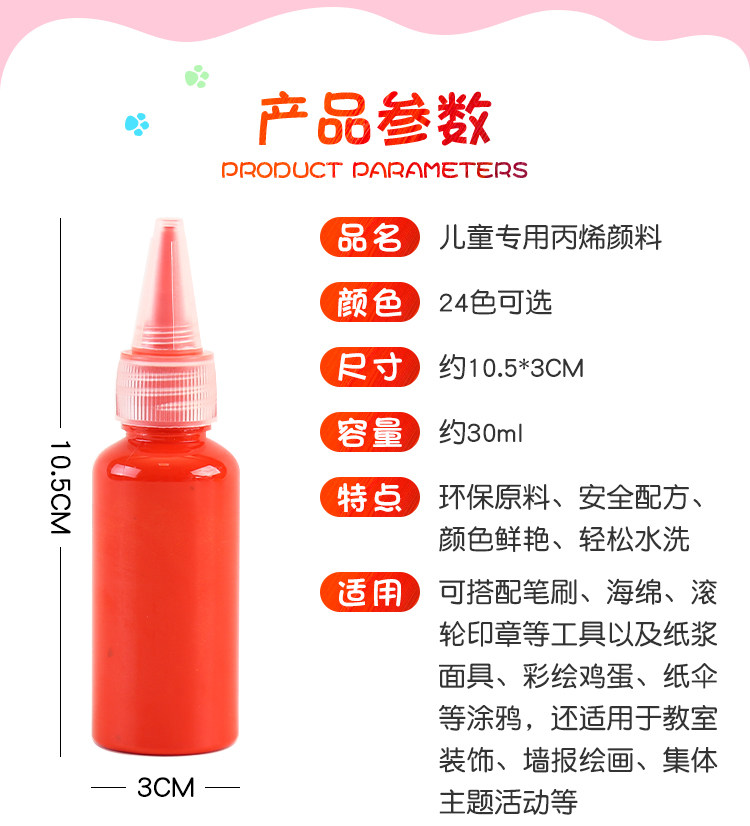 颜料套装24色30ml儿童美术颜料绘画用品幼儿园画画颜料丙烯
