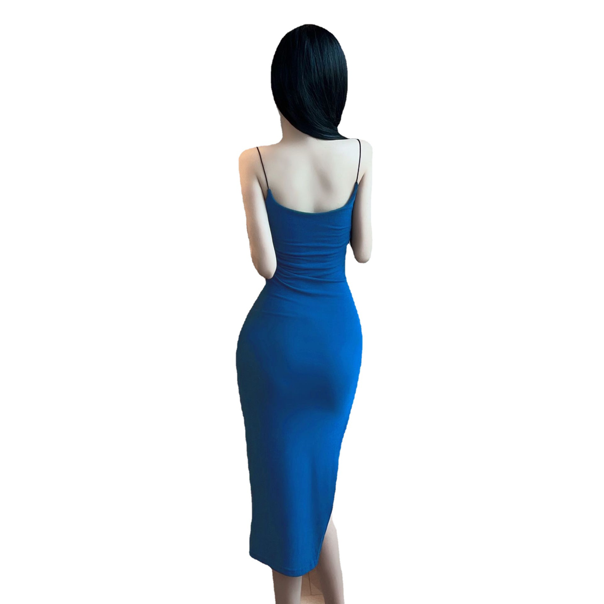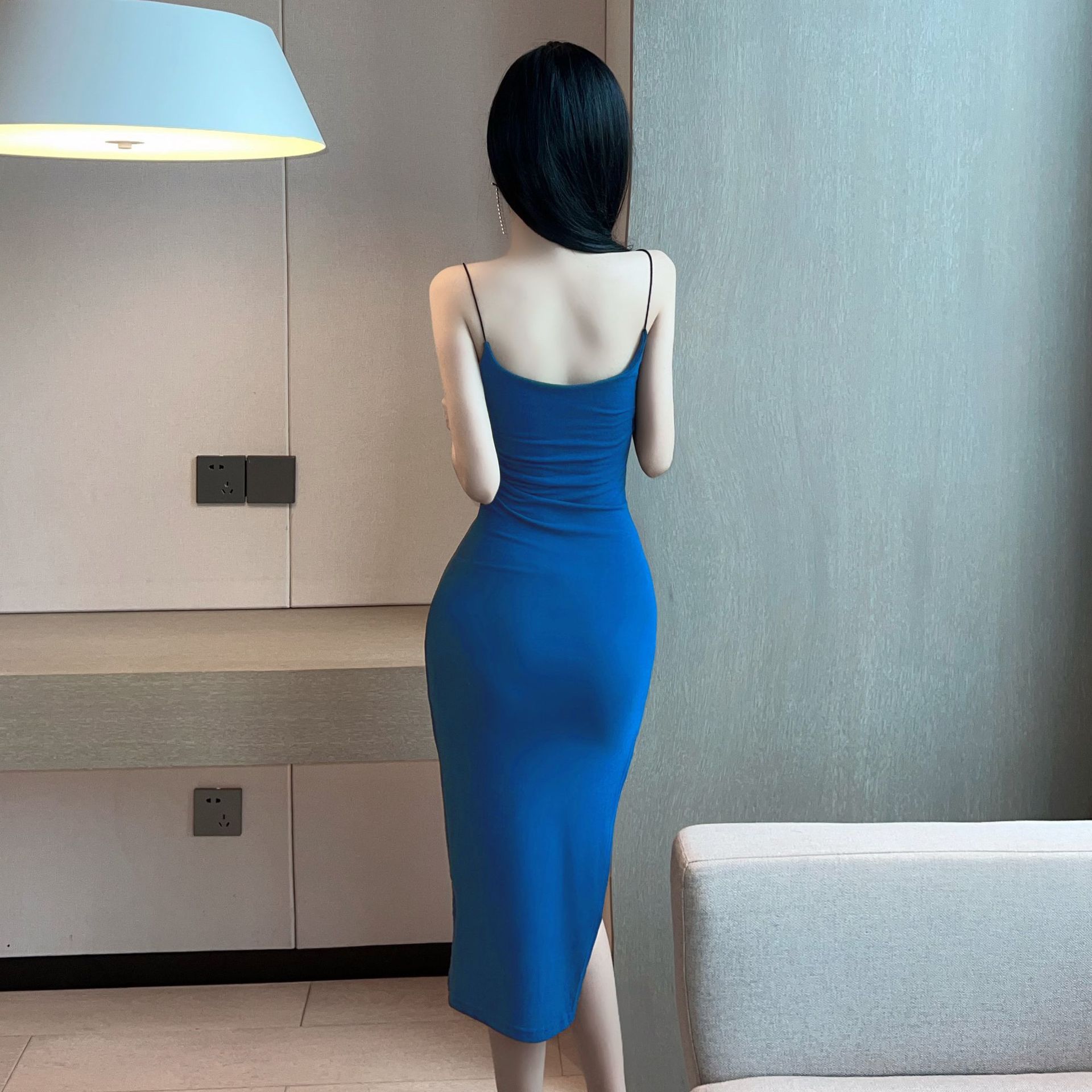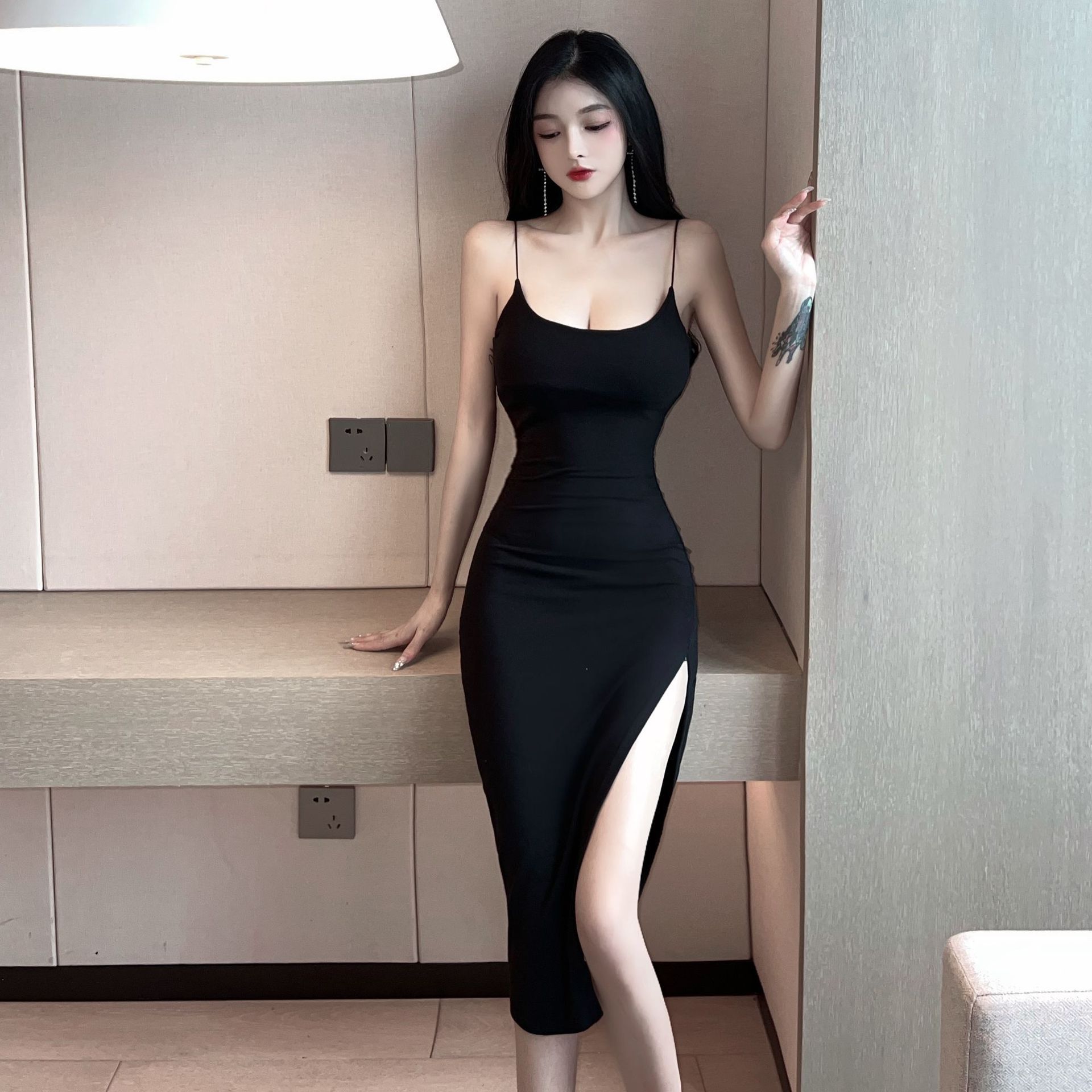 纯欲辣妹吊带连衣裙女夏季性感开叉中长裙2022年新款收腰包臀裙女