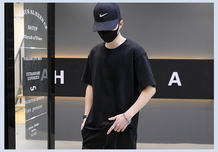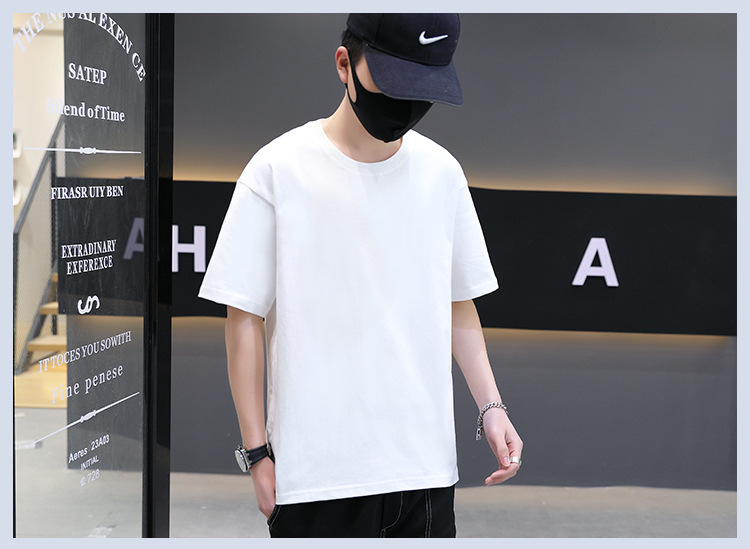 直播220g克重磅纯棉短袖T恤男女宽松纯色正肩美式上衣白色打底衫