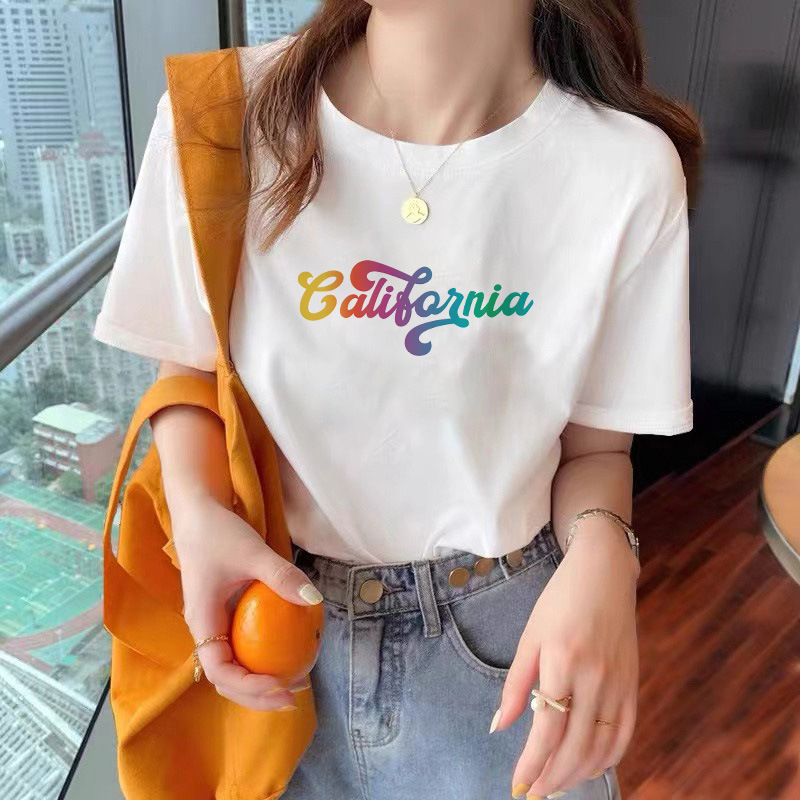 2023年夏季新款纯棉短袖t恤女韩版宽松百搭上衣圆领内搭ins潮体恤