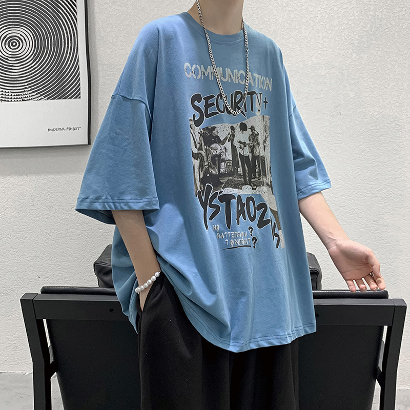 短袖t恤男夏装潮牌宽松圆领涂鸦印花上衣ins港风休闲学生半袖体恤