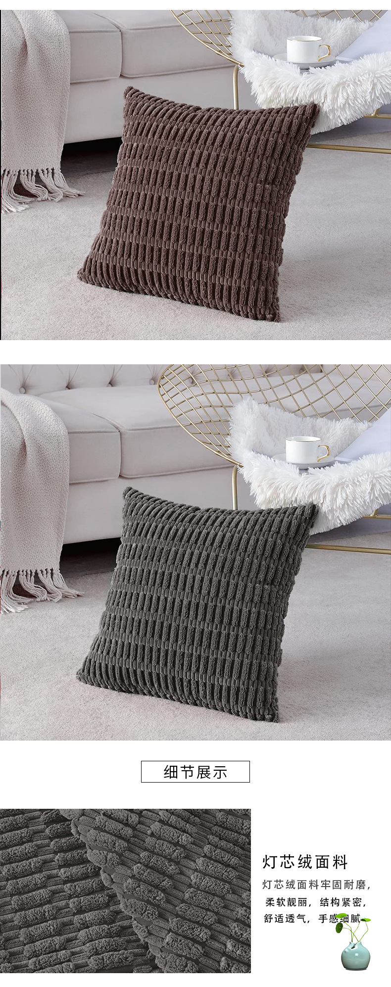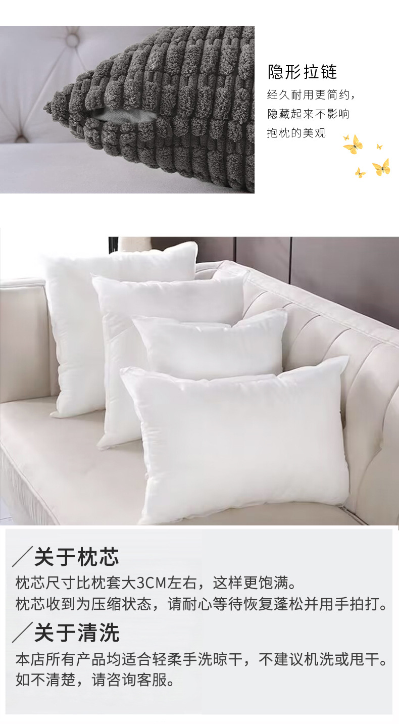 北欧纯色灯芯绒抱枕套靠垫套车用枕腰枕客厅沙发卧室酒店样板房