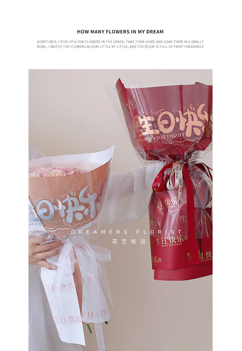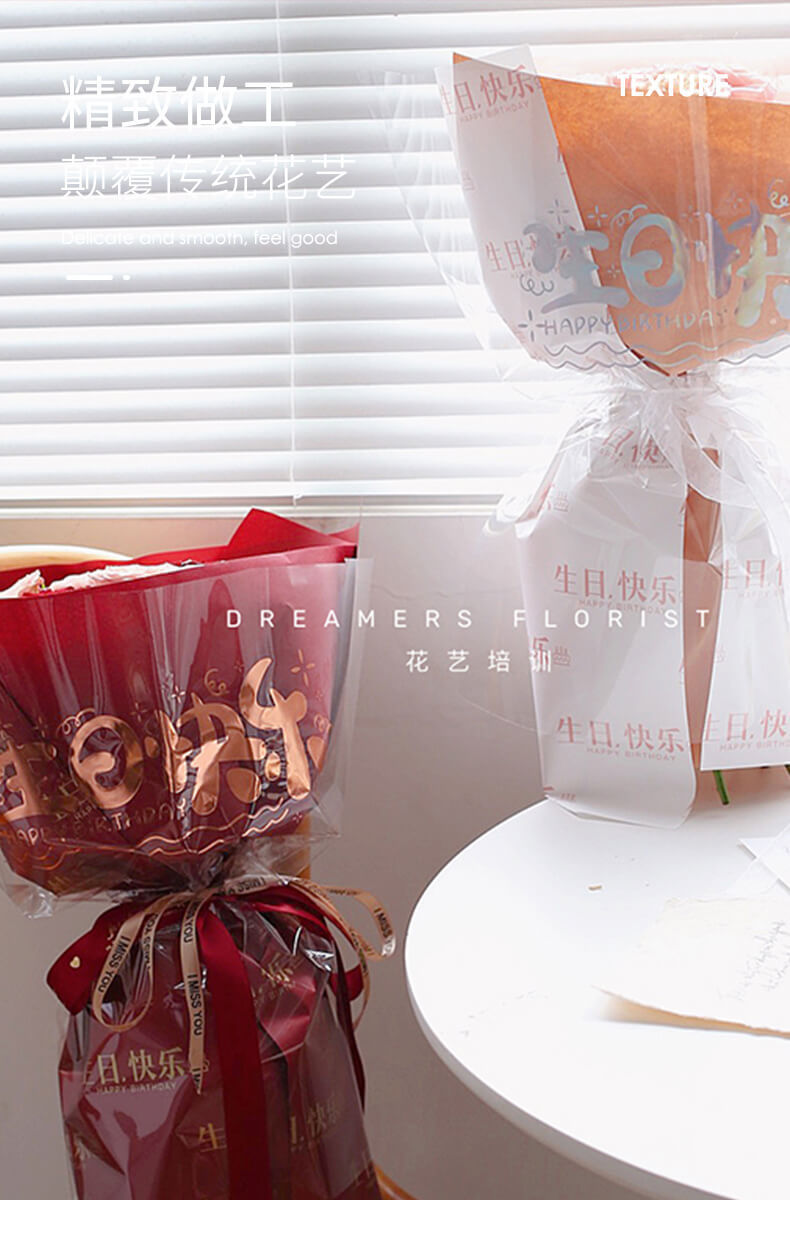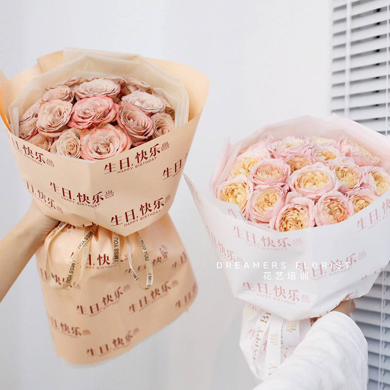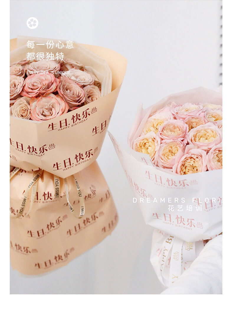 鲜花包装纸花店花艺diy插花礼品包装加厚防水生日快乐节日包装纸