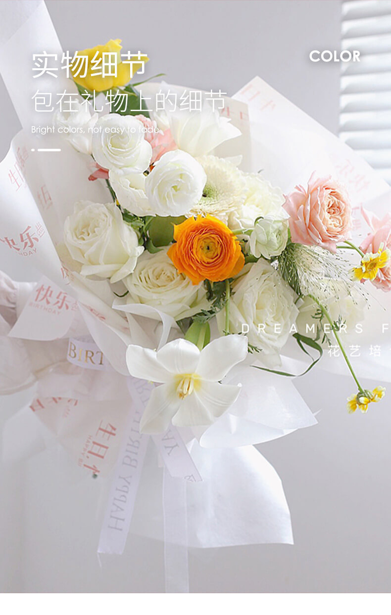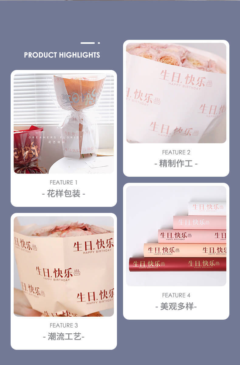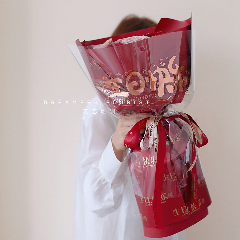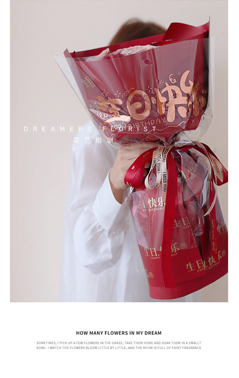 鲜花包装纸花店花艺diy插花礼品包装加厚防水生日快乐节日包装纸