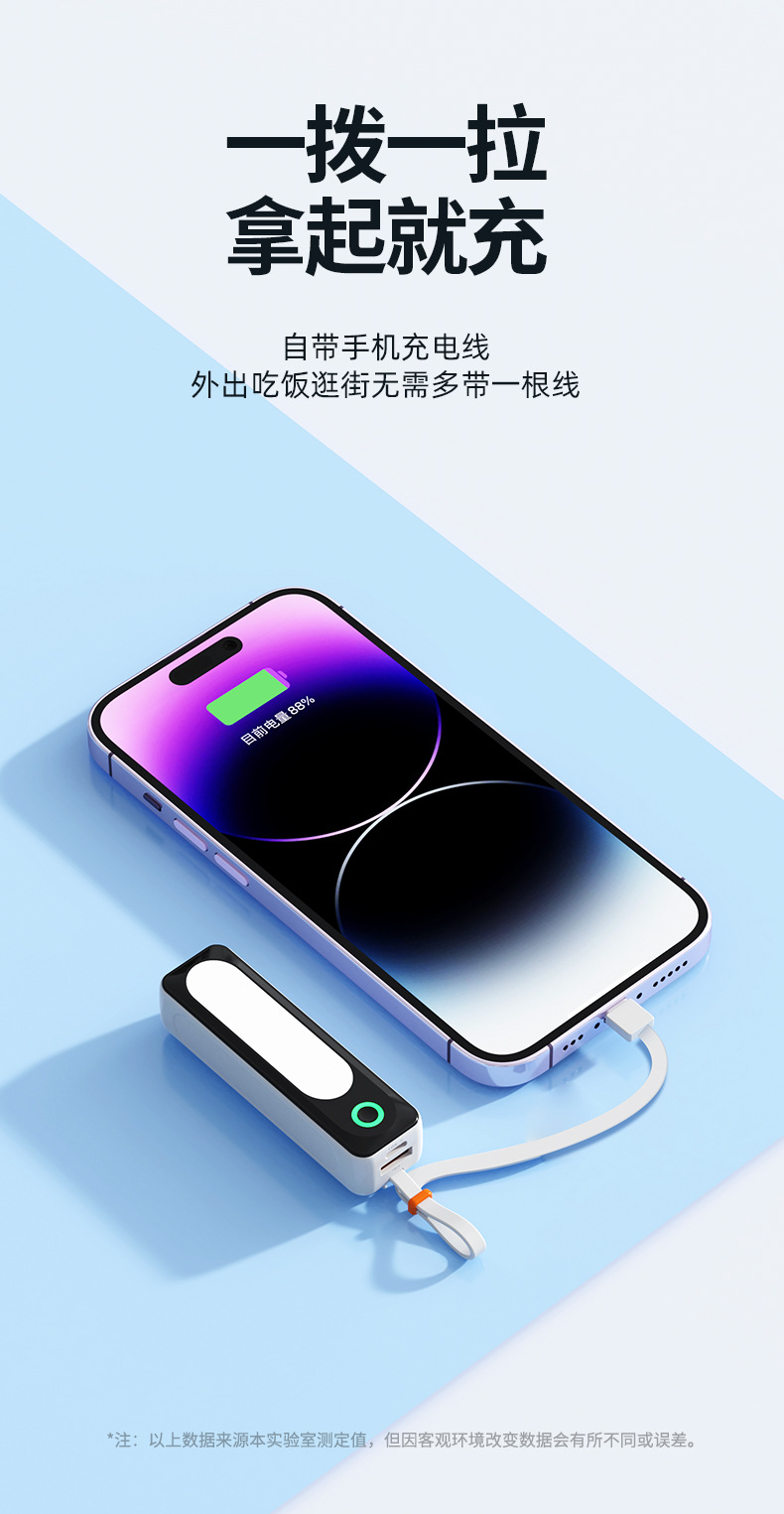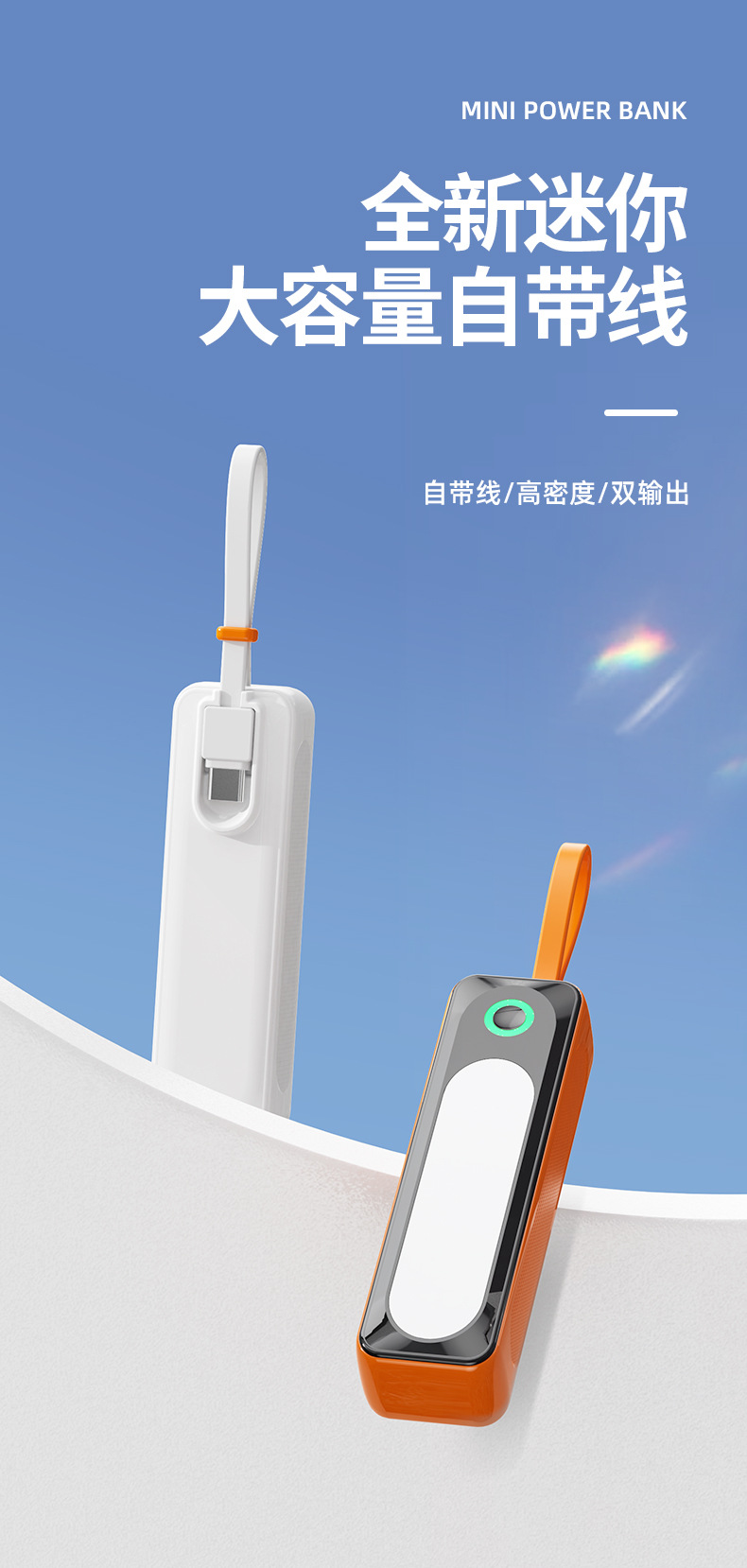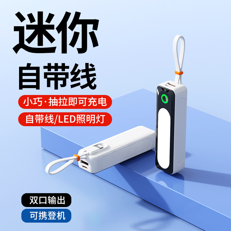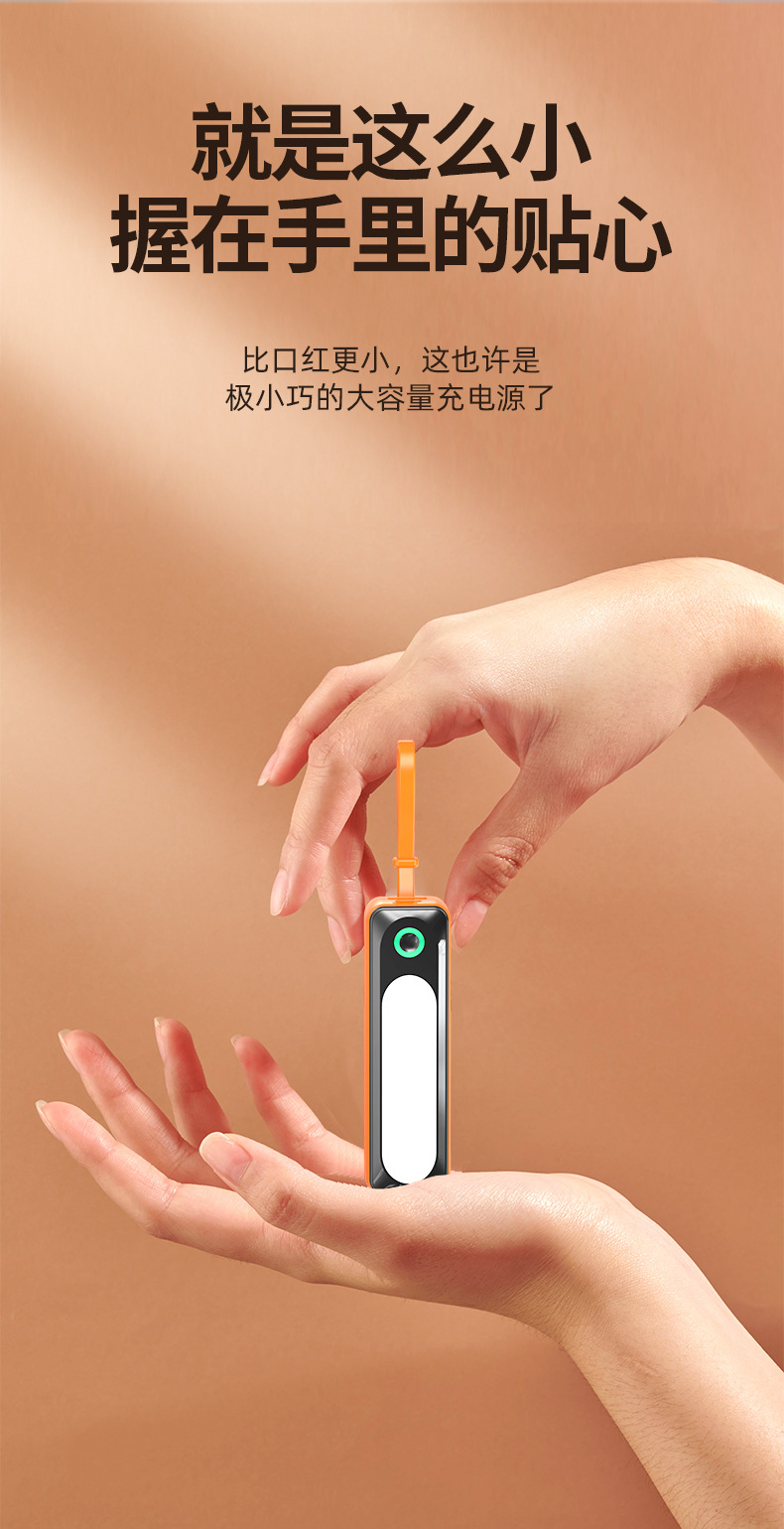 能量胶囊充电宝5000毫安自带线超薄小巧便携迷你口红移动电源批发