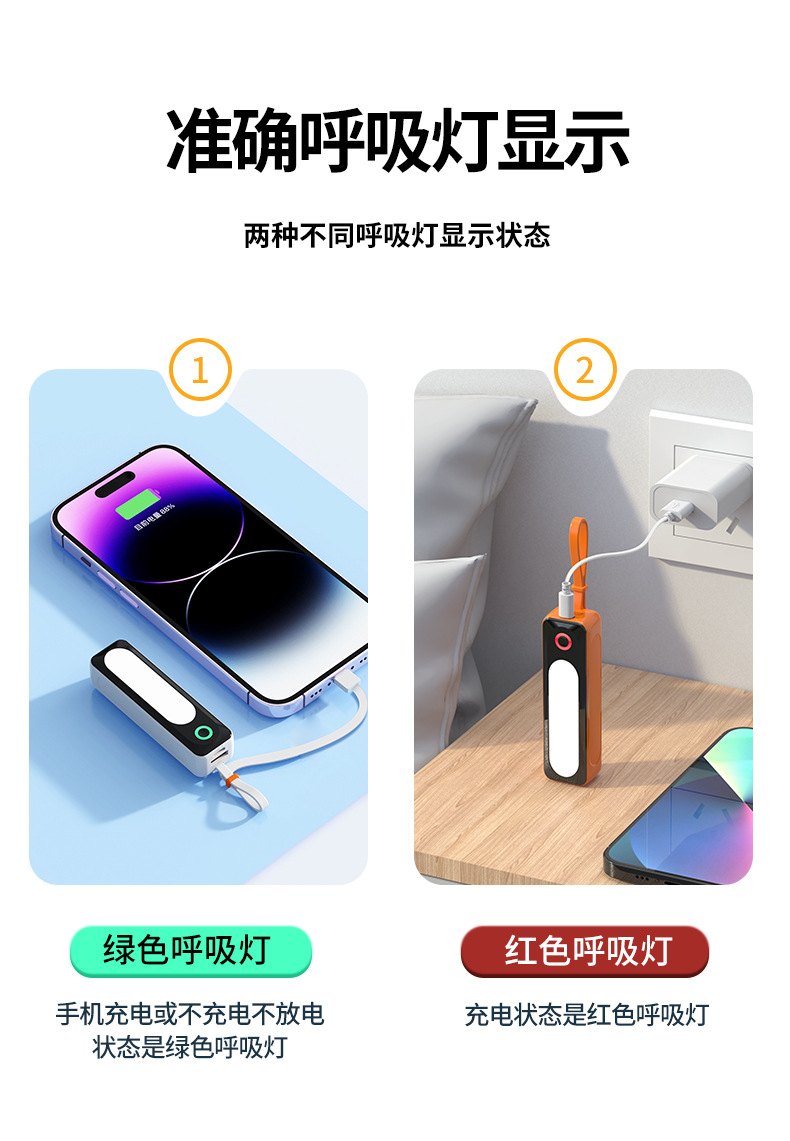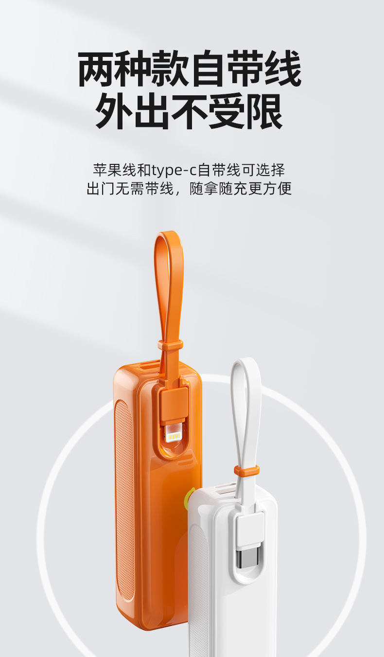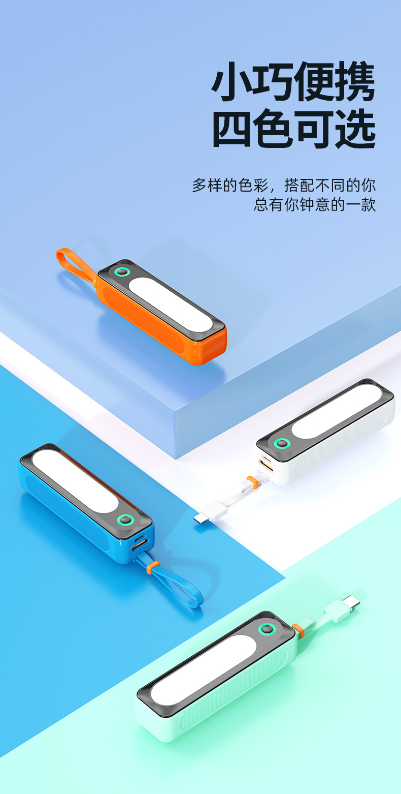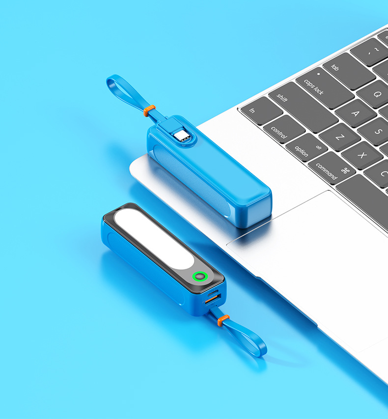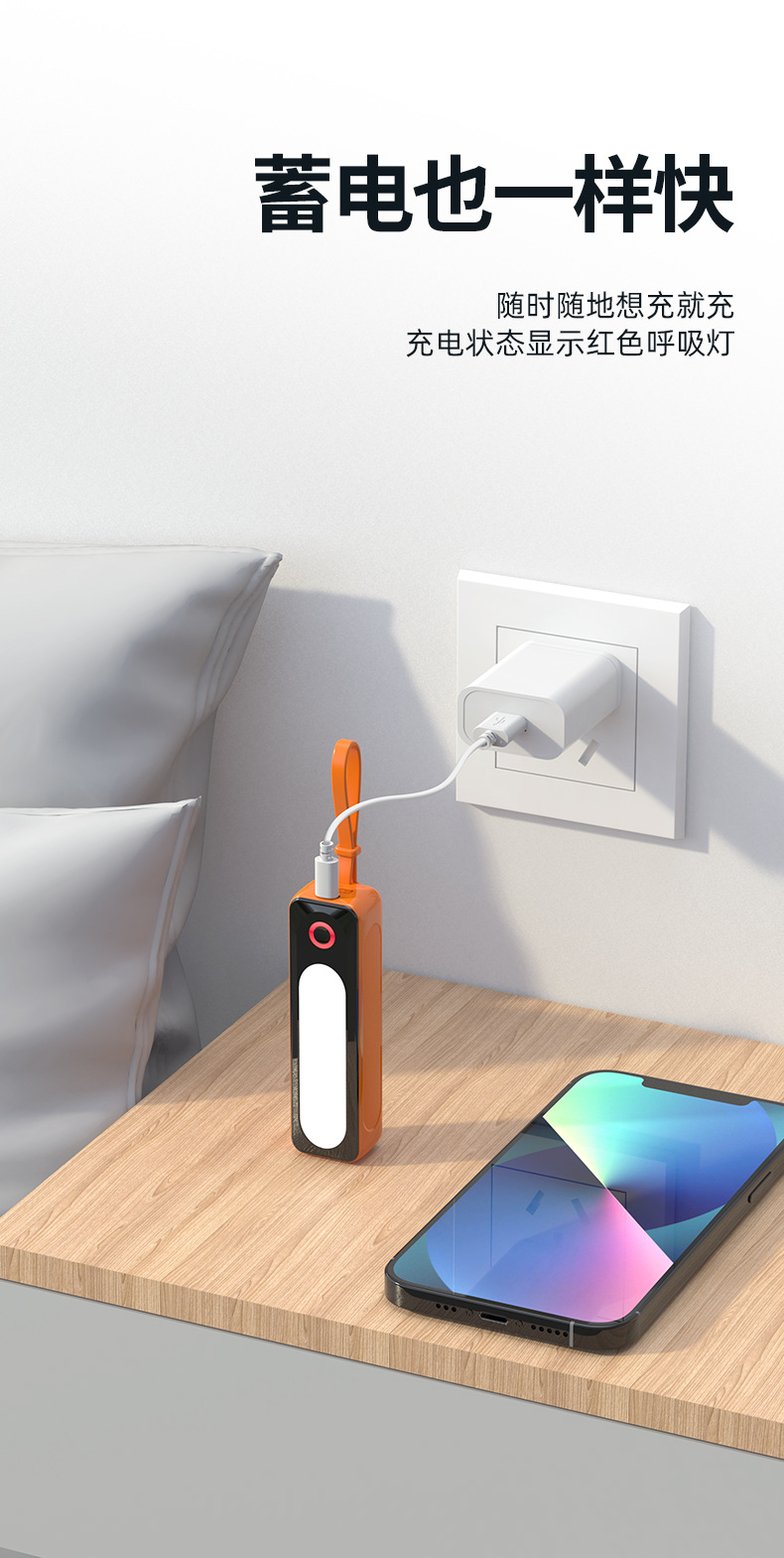 能量胶囊充电宝5000毫安自带线超薄小巧便携迷你口红移动电源批发