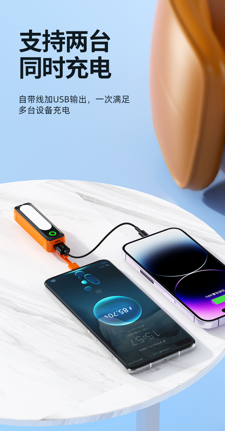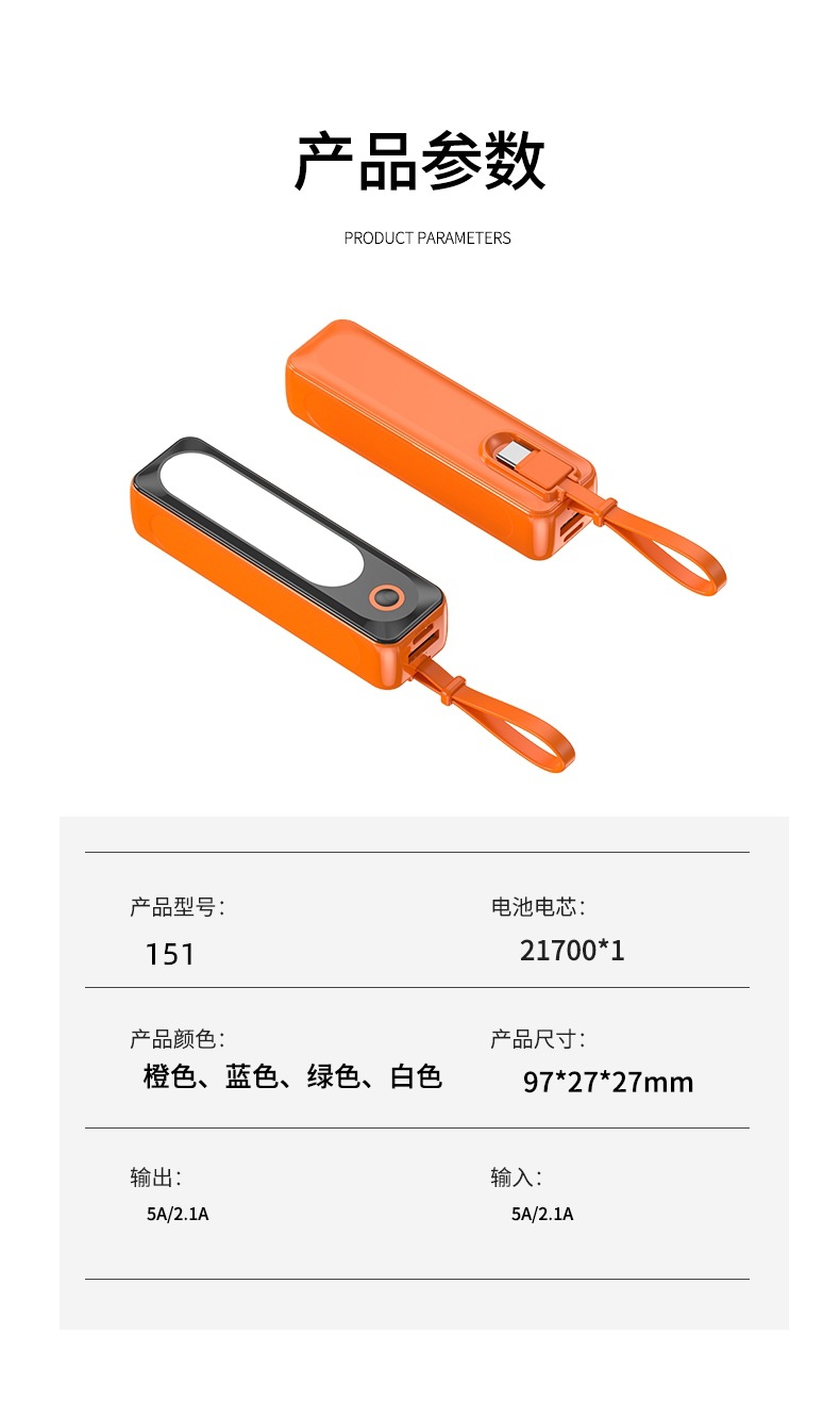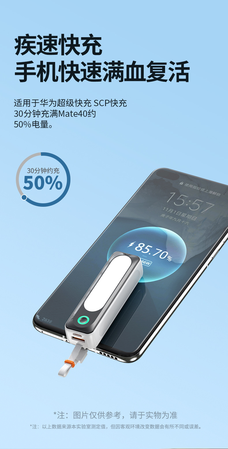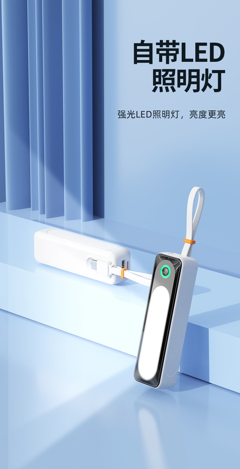 能量胶囊充电宝5000毫安自带线超薄小巧便携迷你口红移动电源批发