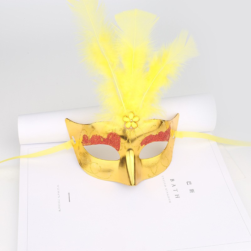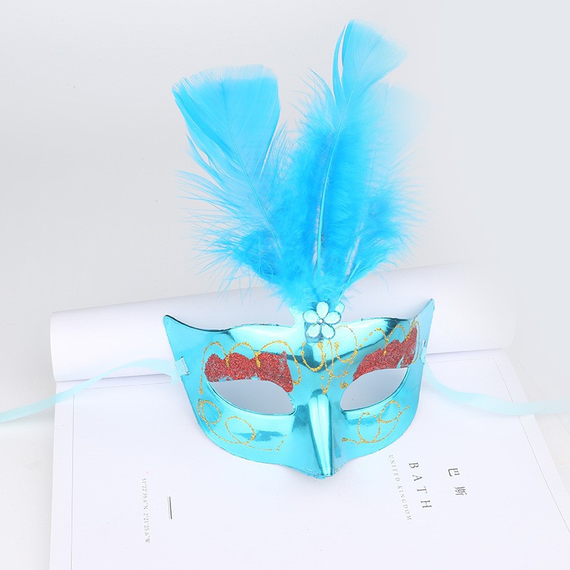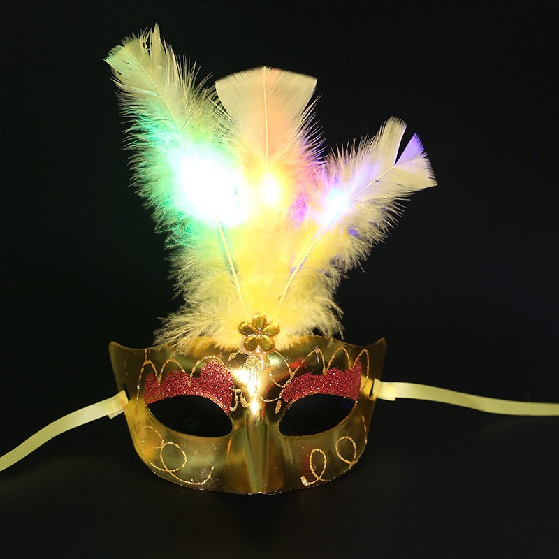 万圣节发光羽毛面具半脸女儿童化妆舞会公主假面成人派对道具货源