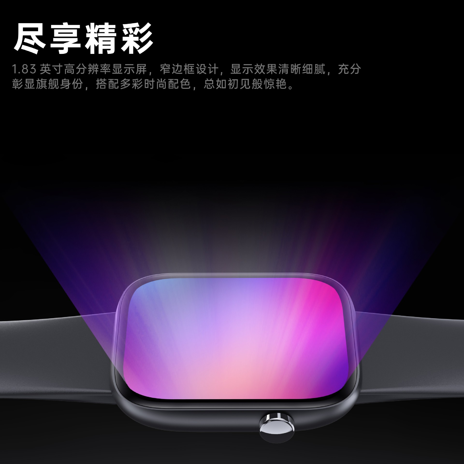 1- 1.85英寸高清全触彩屏运动智能手表,分辨率240X286像素;