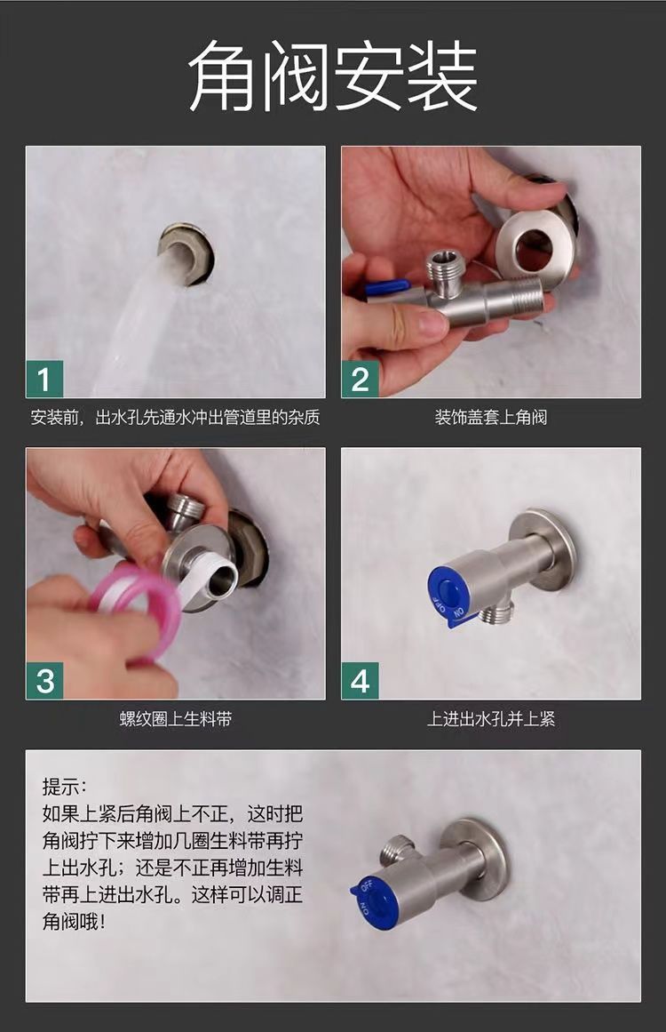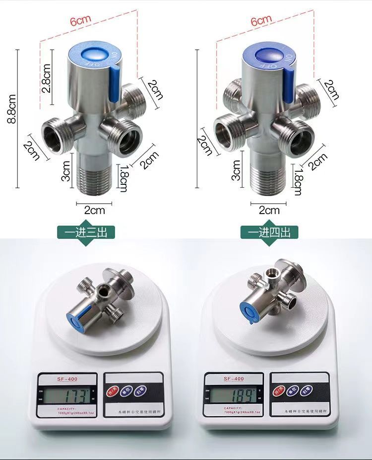 304不锈钢三通角阀一分二加长多功能四通4分一进双二三四出水龙头