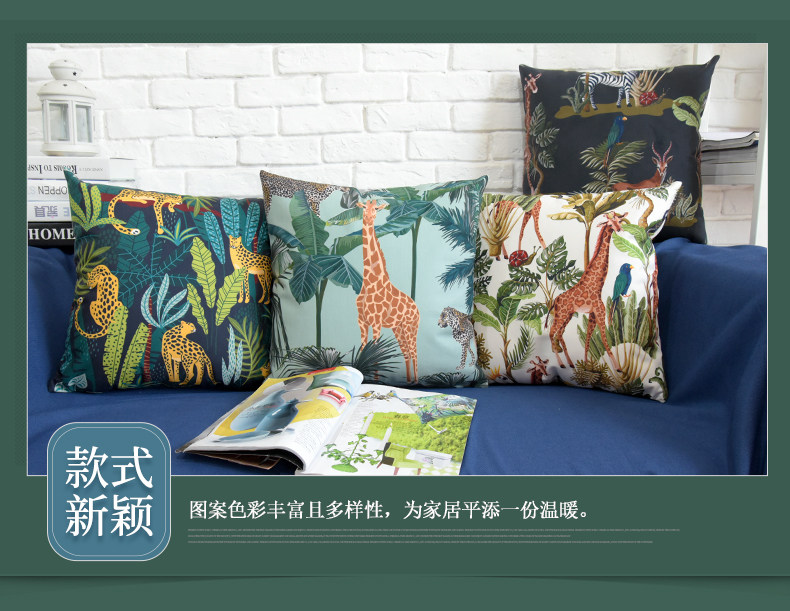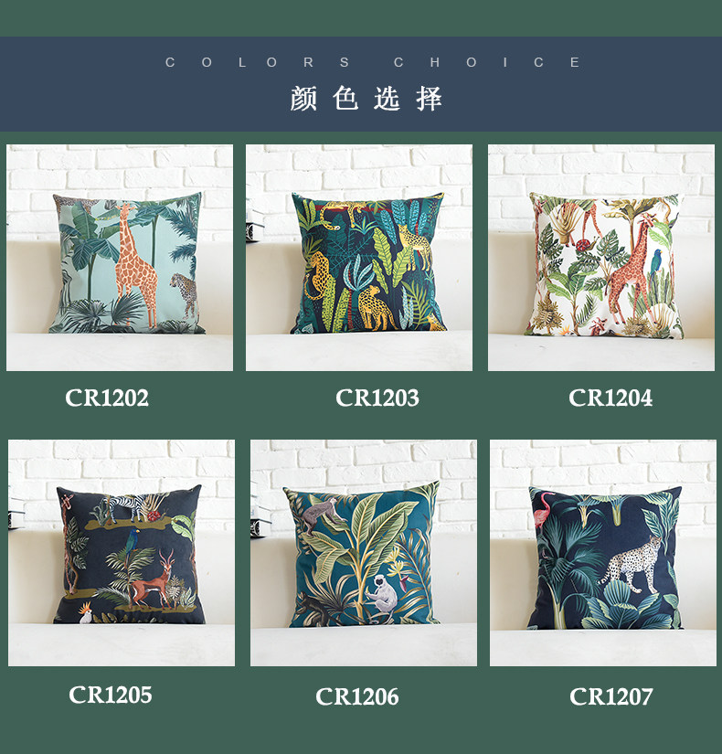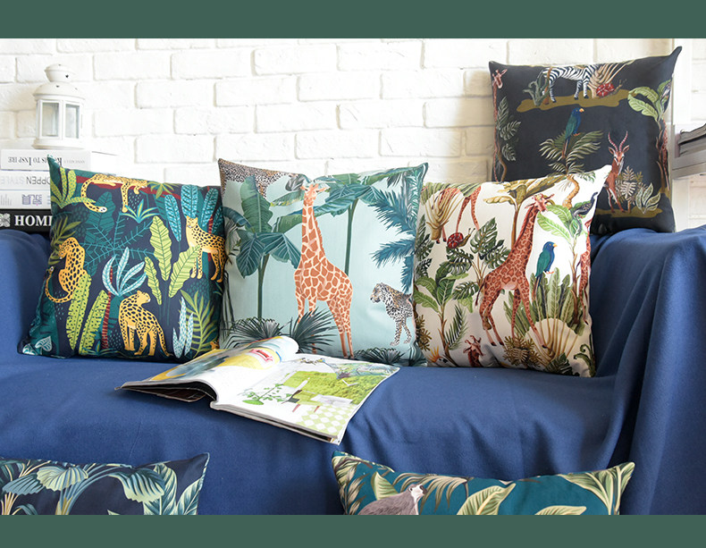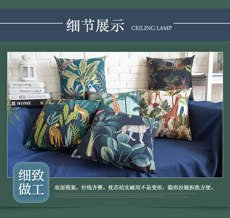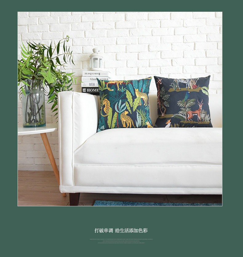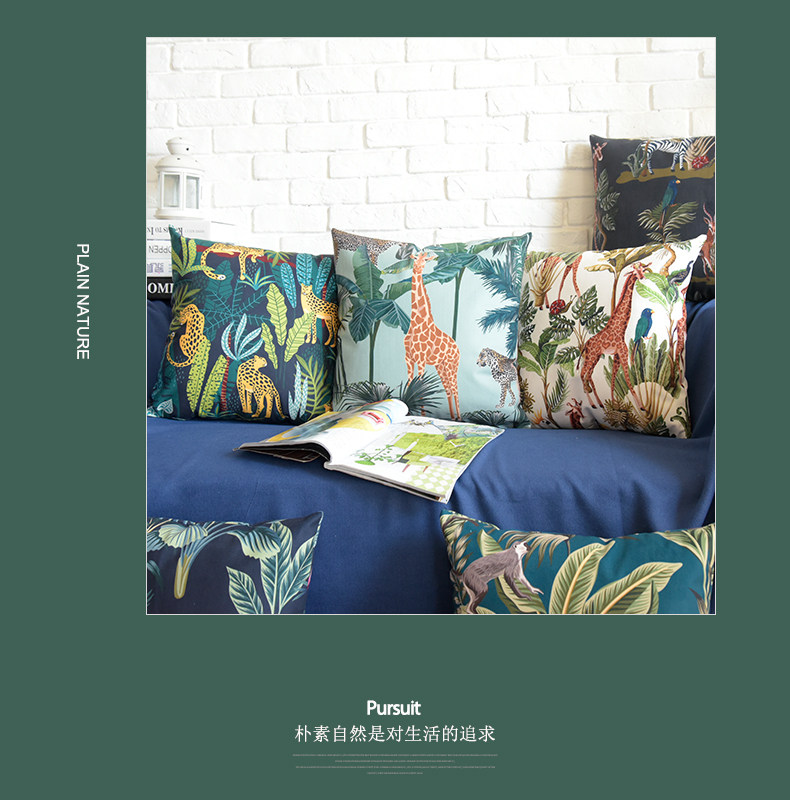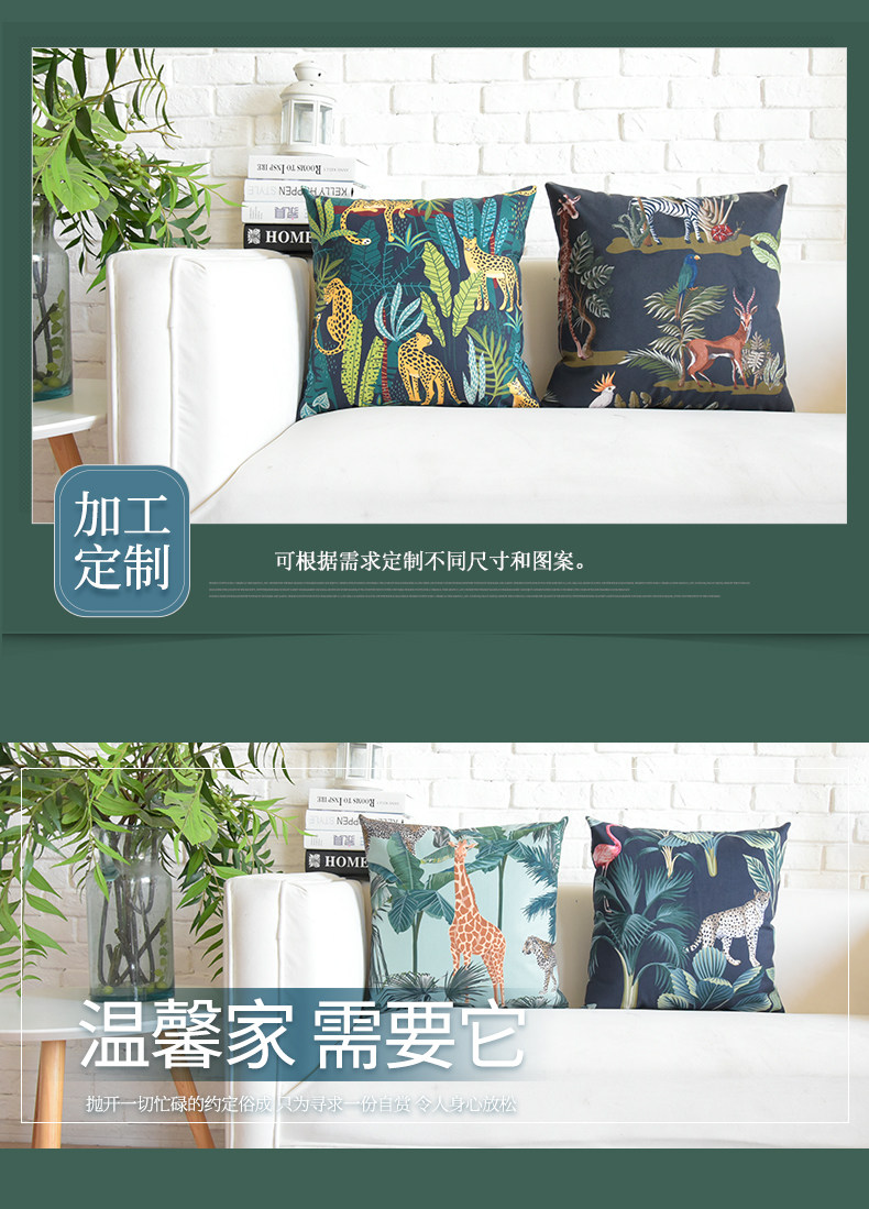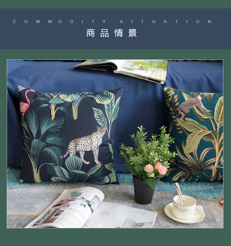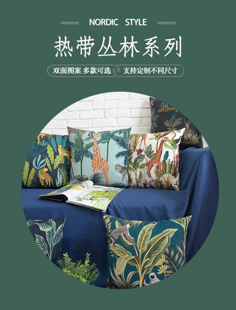 美式热带丛林沙发靠枕植物绒布双面样板间装饰腰靠垫套办公室抱枕