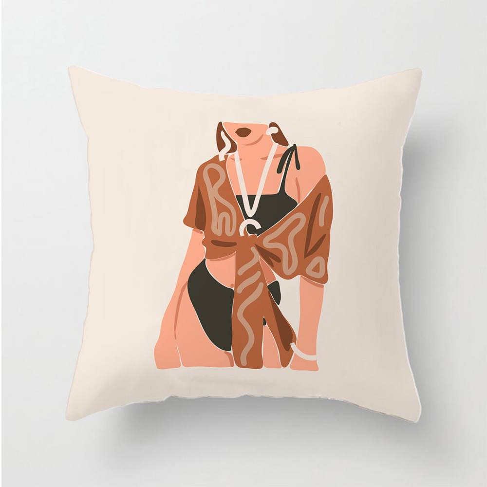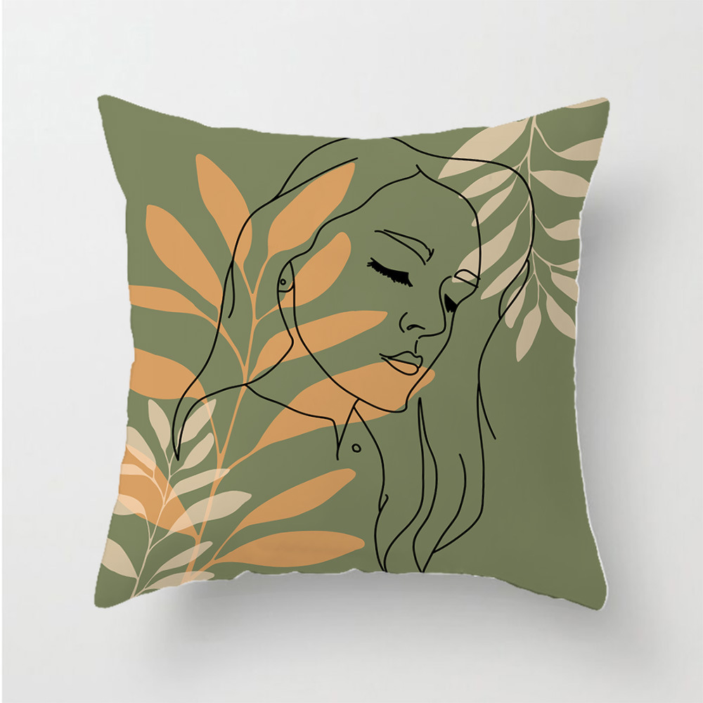 跨境亚马逊北欧抽象花朵抱枕套小清新绿植轻奢家居睡枕靠枕靠垫套
