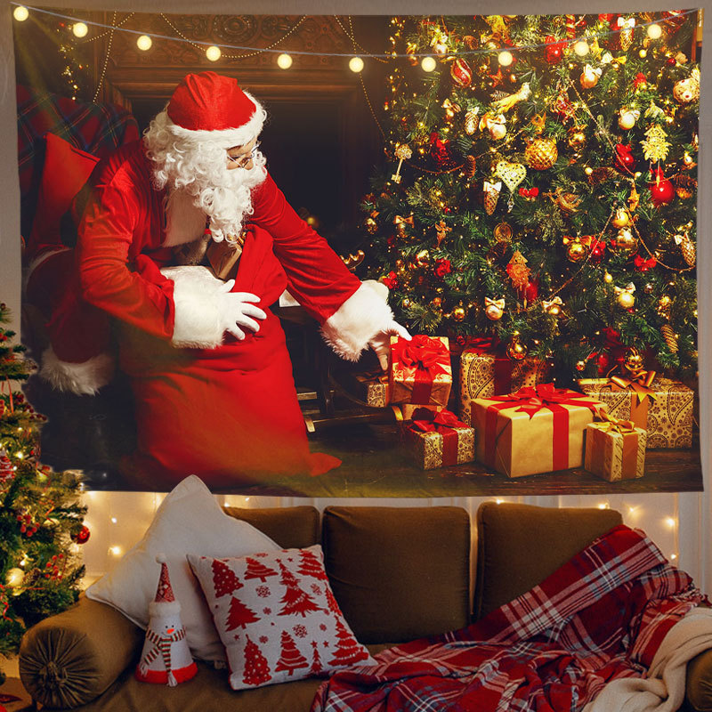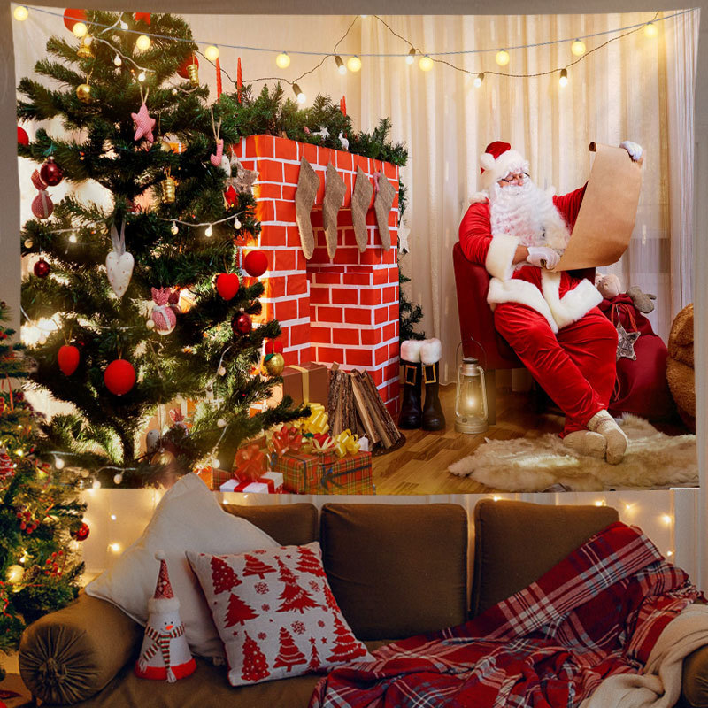 新款圣诞节LED彩灯星星灯夜灯挂毯挂画夜光挂布装饰圣诞老人跨境