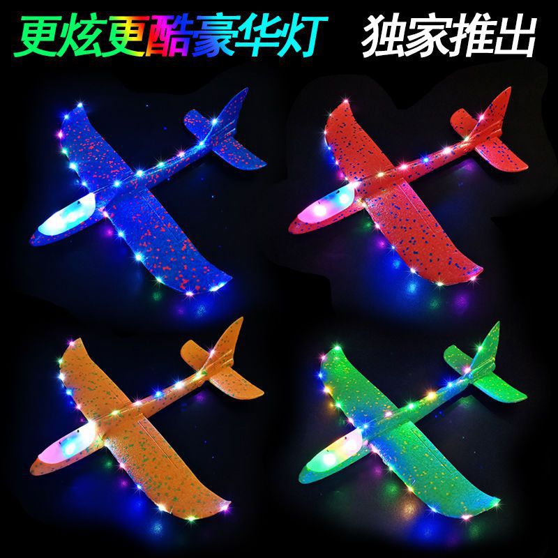 全身发光手抛飞机 泡沫玩具投掷滑翔机网红拼插特技回旋 地摊玩具