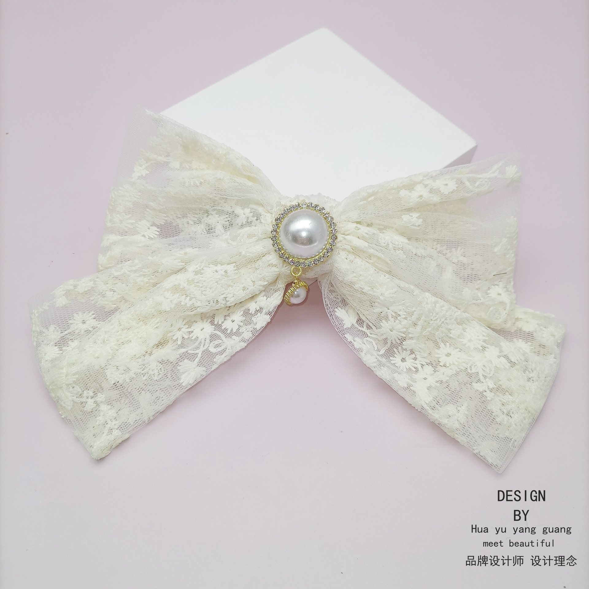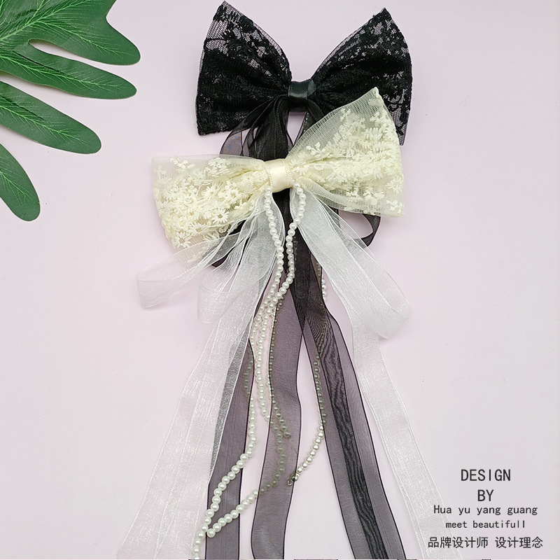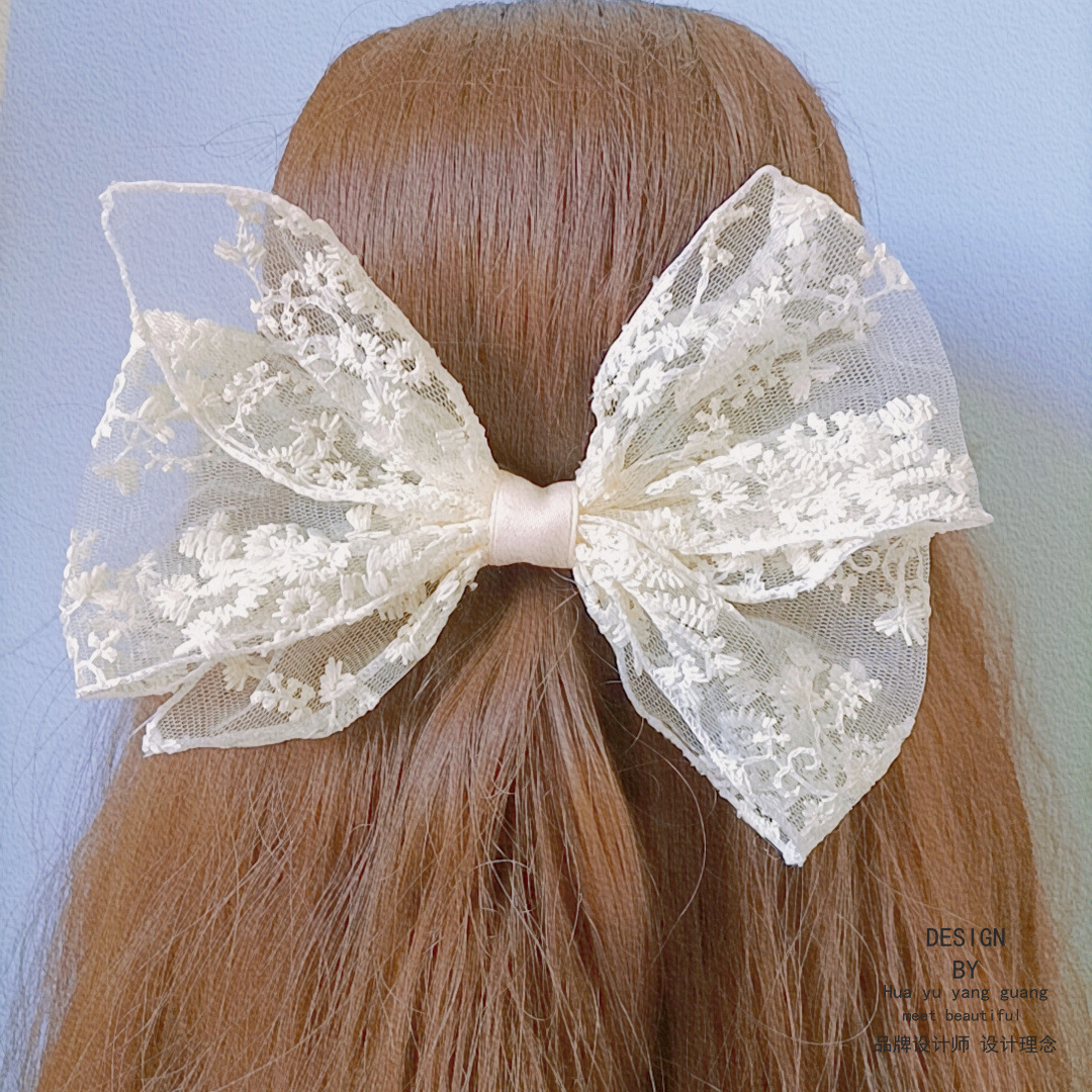 地摊网红ins超仙蕾丝蝴蝶结发绳女甜美气质顶夹发卡发饰韩国头饰