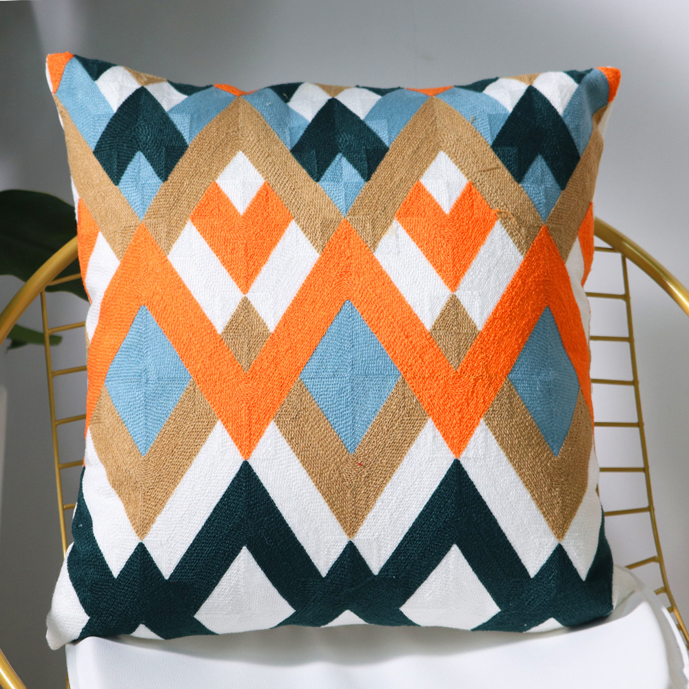 样板间几何满绣美式沙发靠垫靠枕简约纯棉PP单个家具家用抱枕方枕