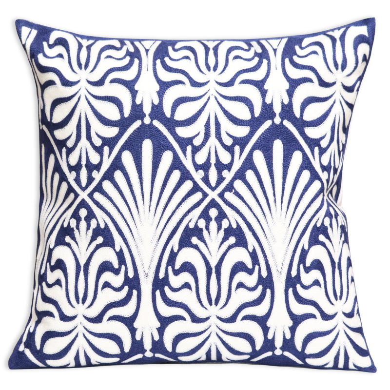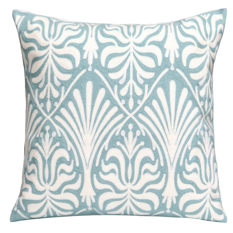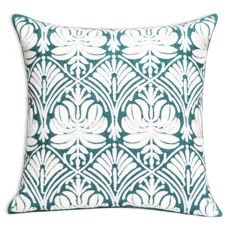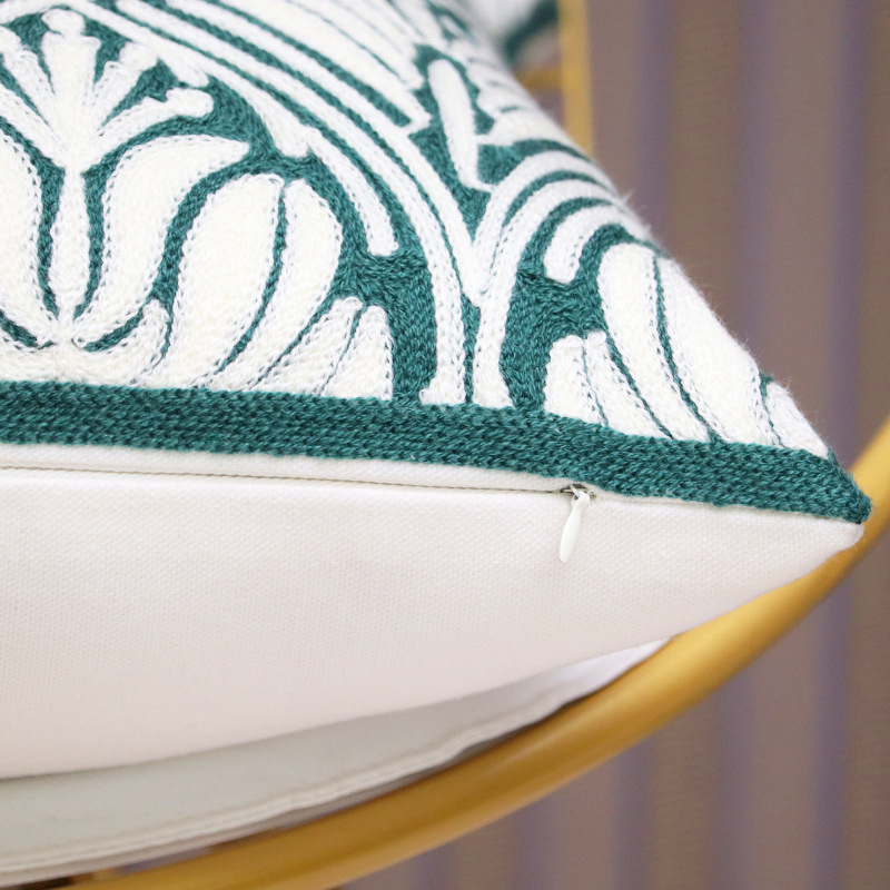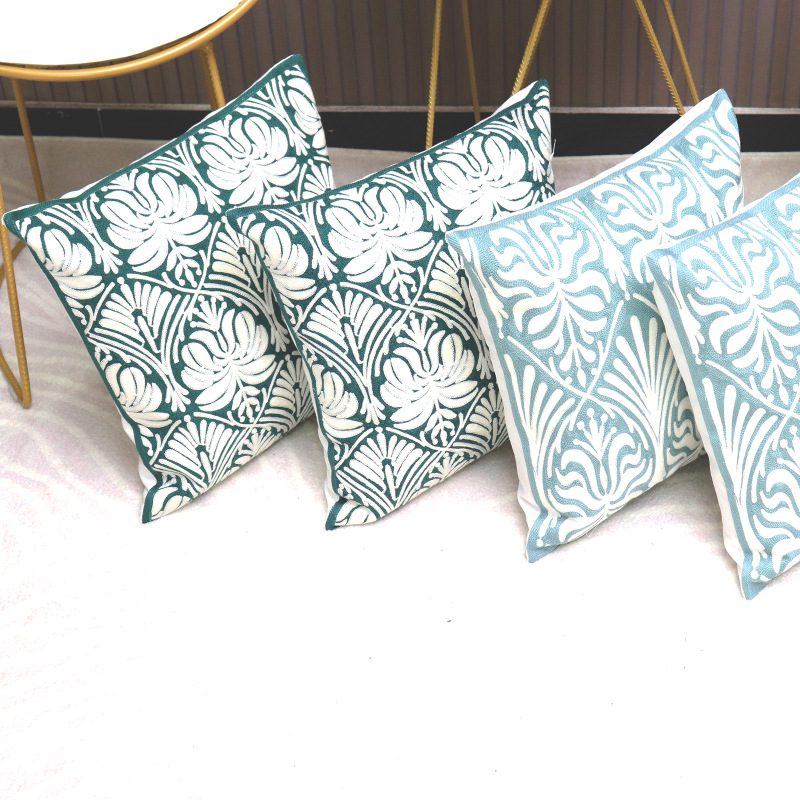 新款设计栀子花刺绣抱枕套沙发方形靠枕腰枕蓝色满绣靠垫套ins