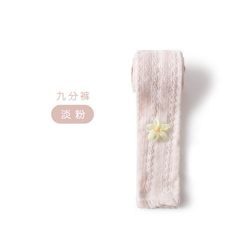 夏季儿童打底裤女童网眼九分裤小花朵宝宝连裤袜透气婴儿防蚊裤袜