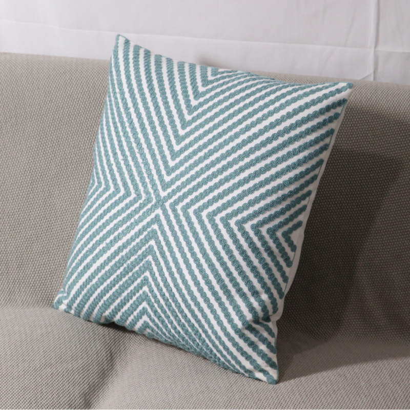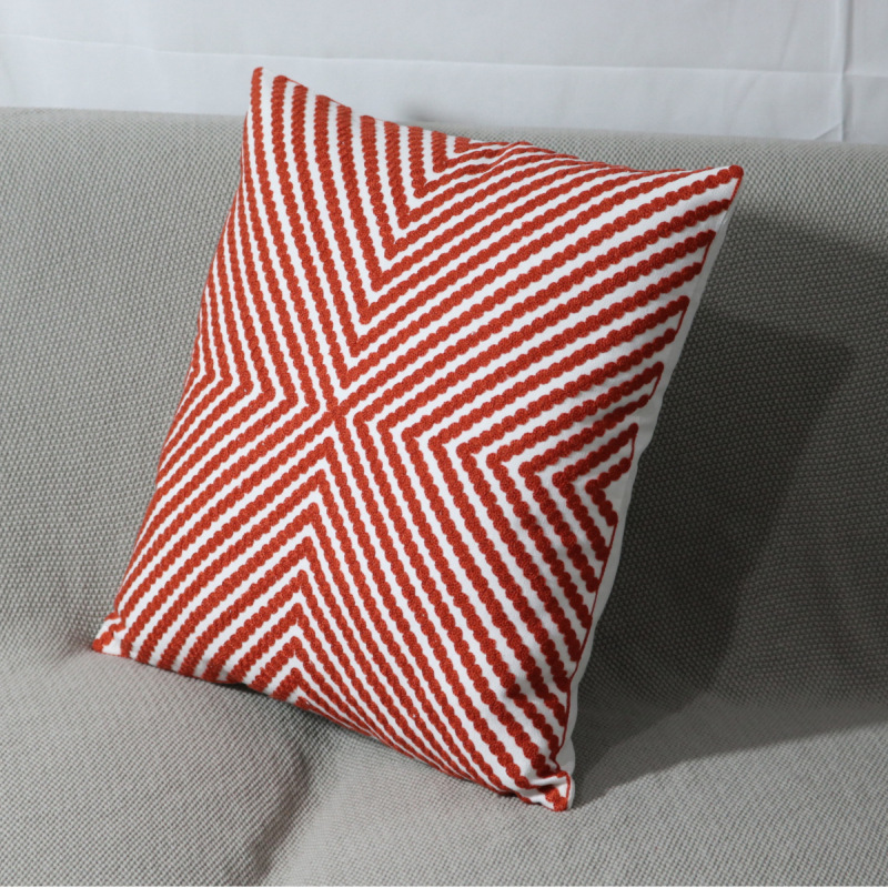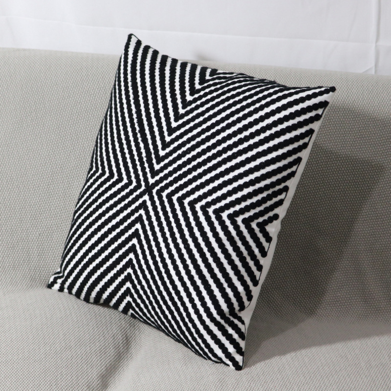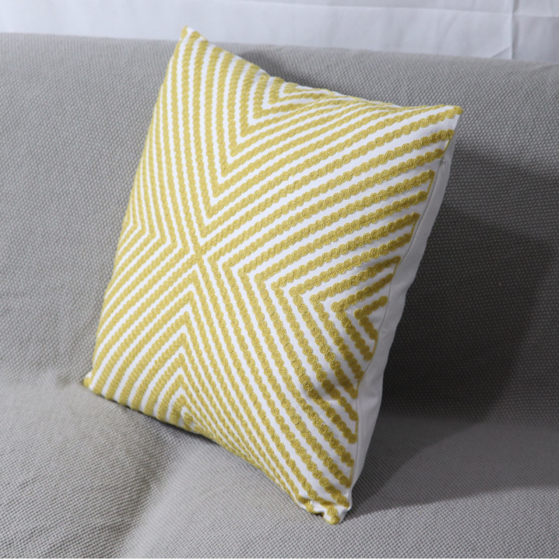 北欧几何刺绣花抱枕套样板房棉麻靠垫小圆点客厅沙发黄色飘窗