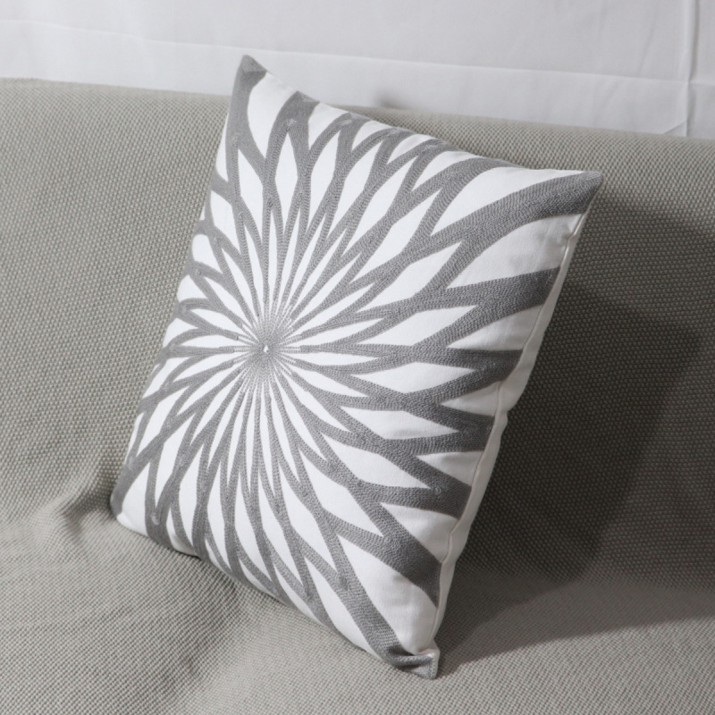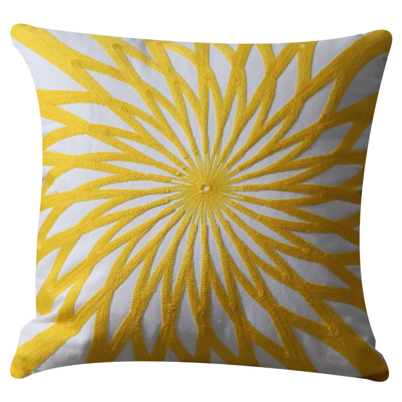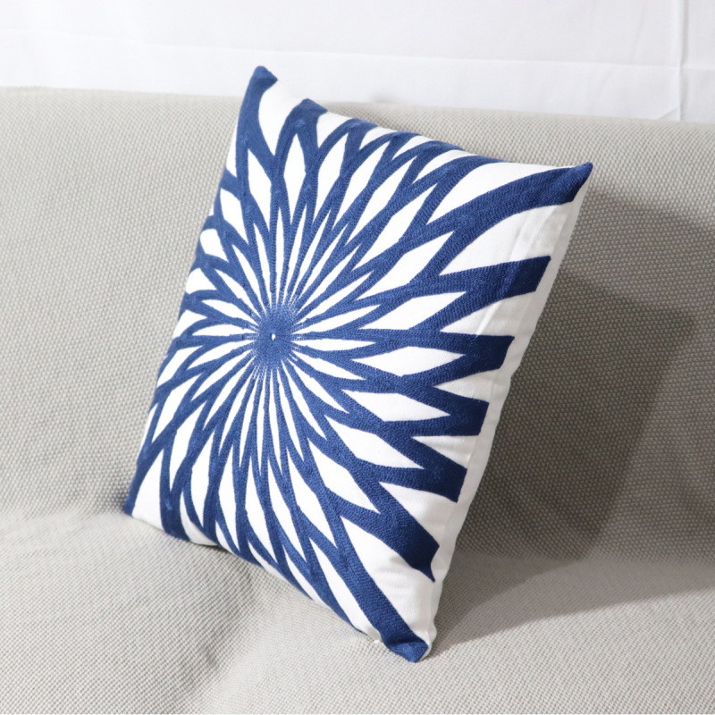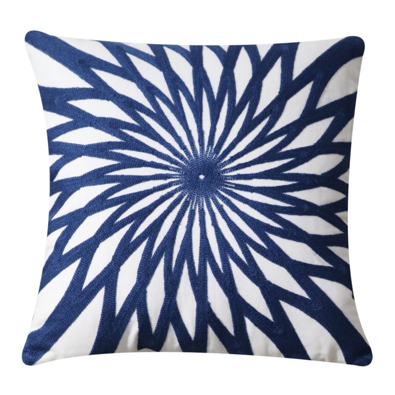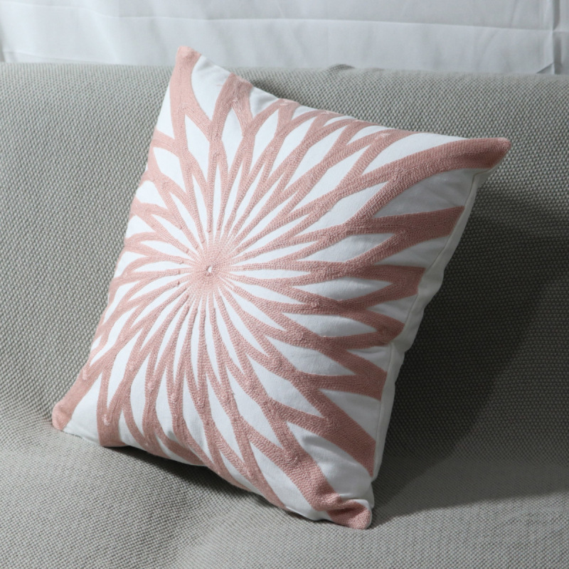 跨境几何刺绣抱枕套太阳花毛线绣美式帆布绣花靠垫卧室抱枕