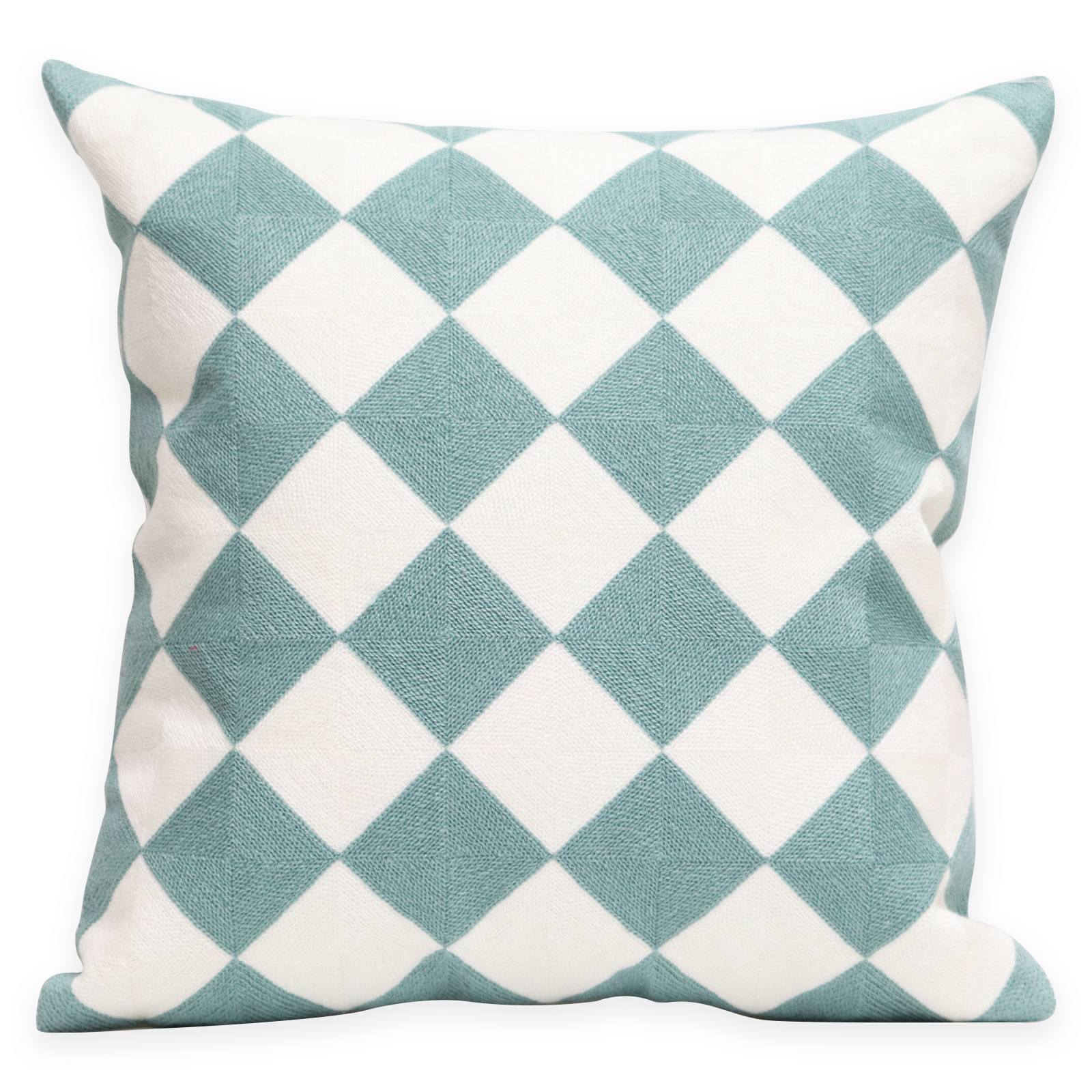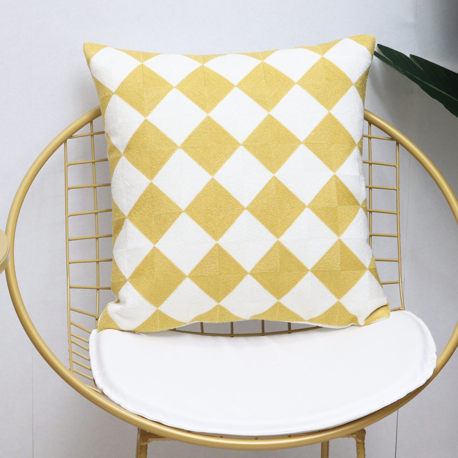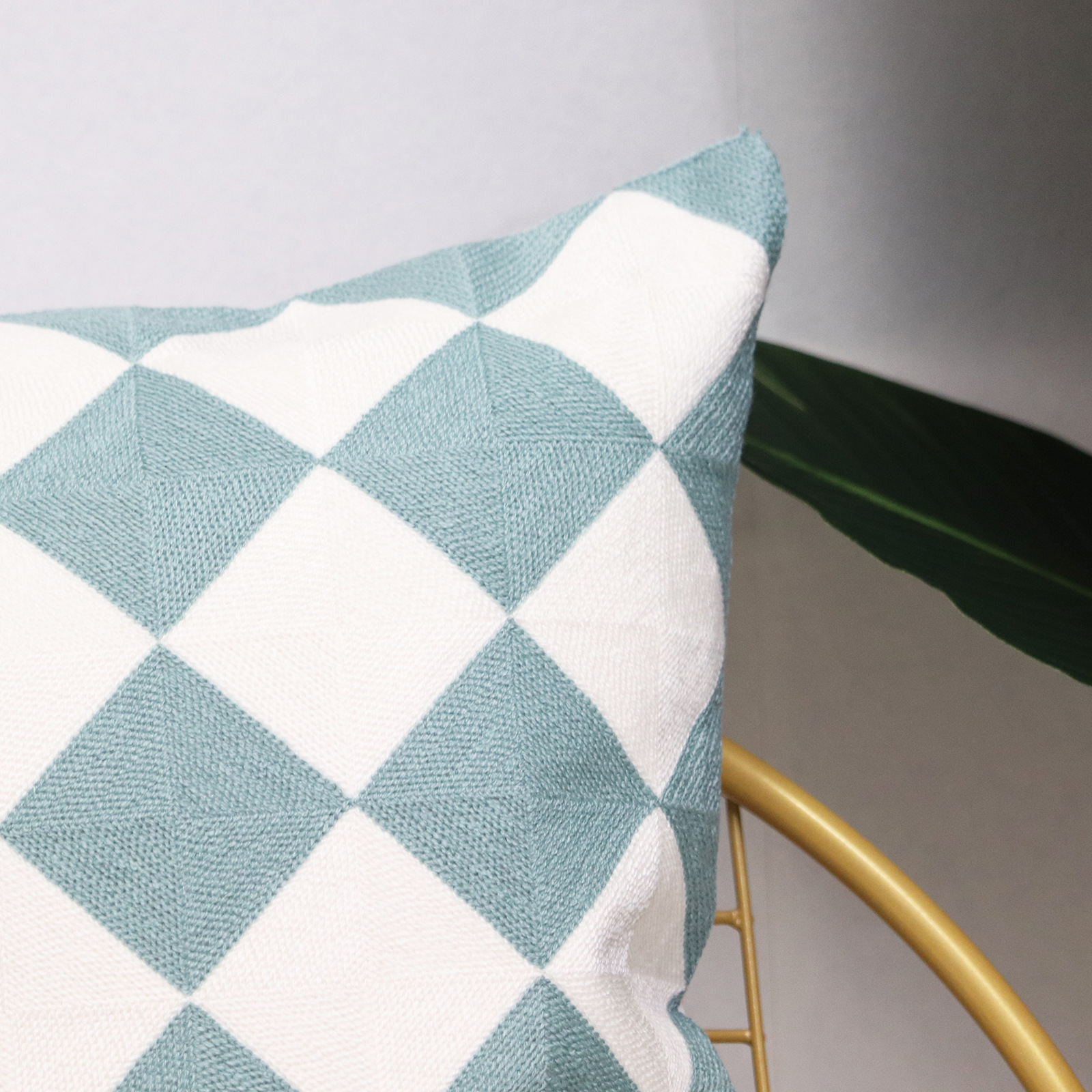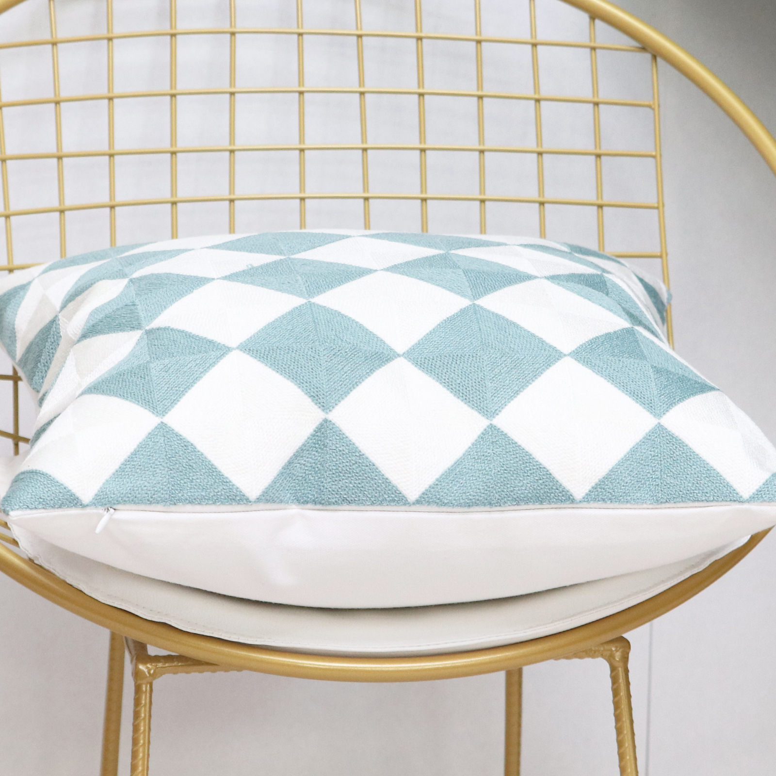 新款极简蓝白棋盘格绣花抱枕靠垫客厅沙发靠枕ins风舒适枕套