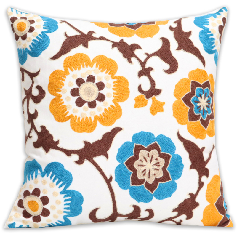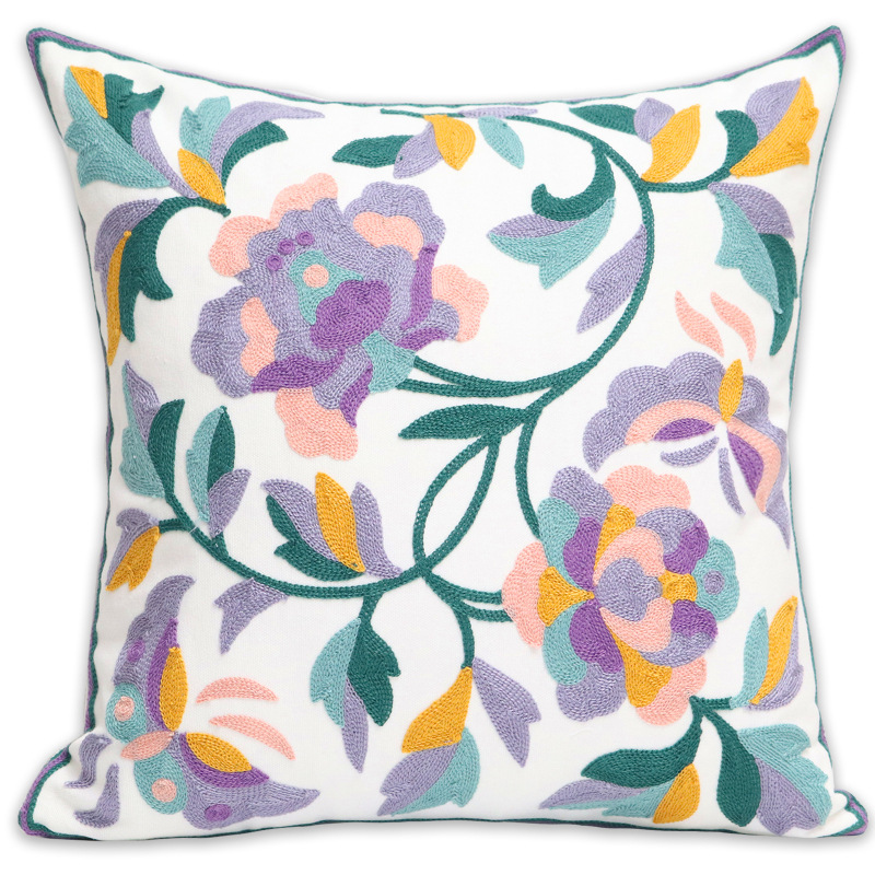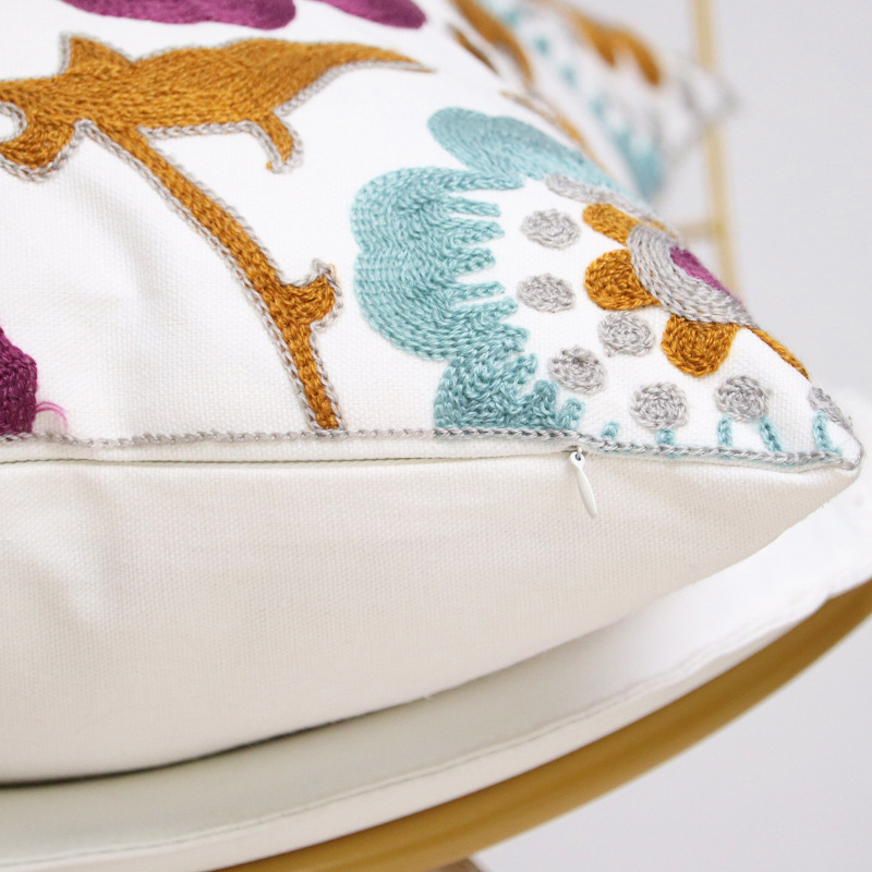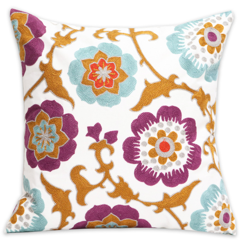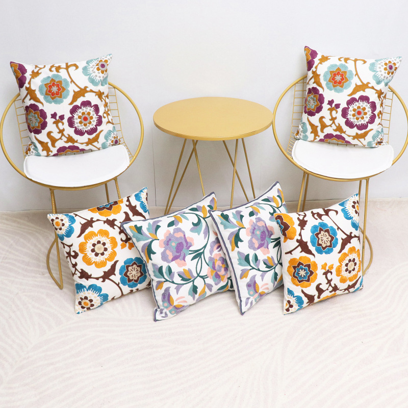 北欧ins刺绣抱枕靠垫客厅沙发座椅靠枕套全棉花朵腰枕外贸抱枕