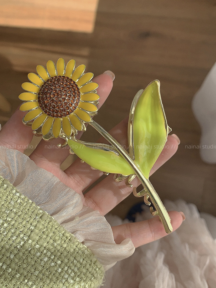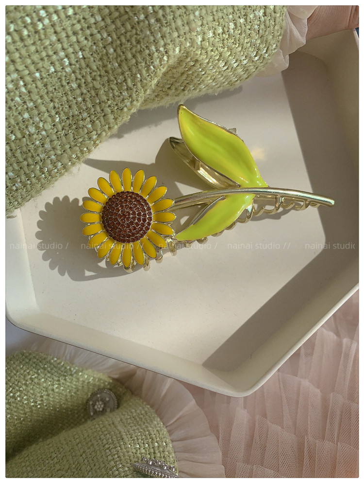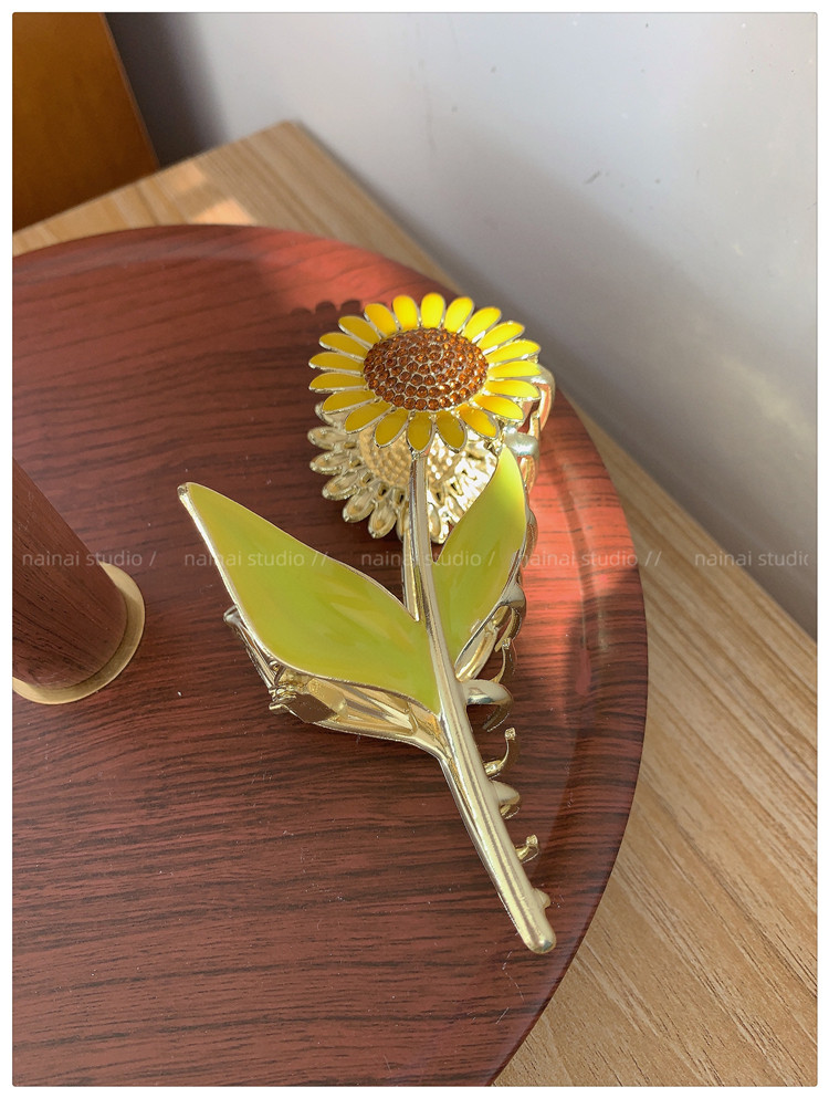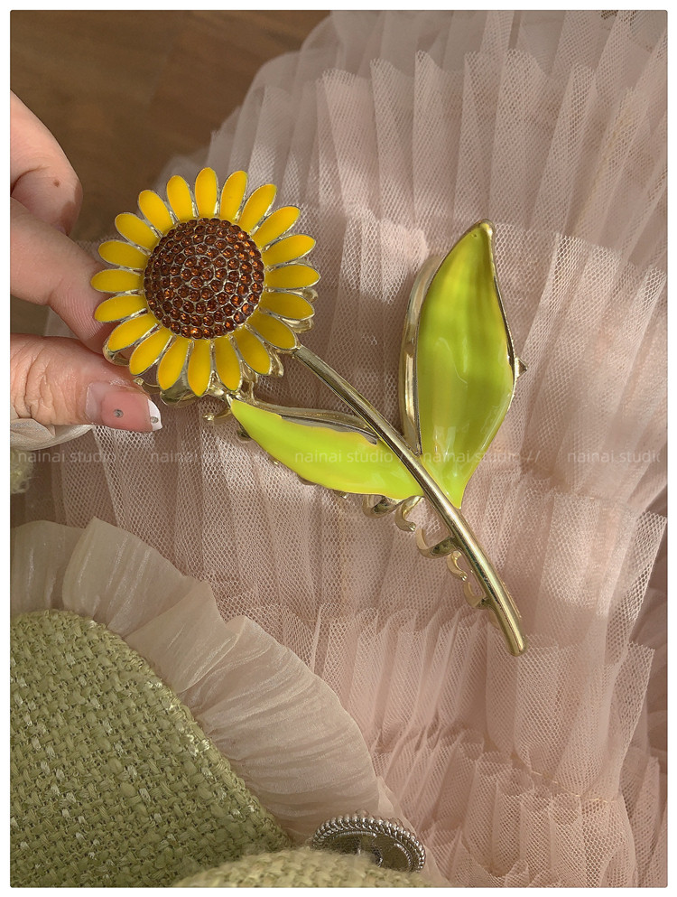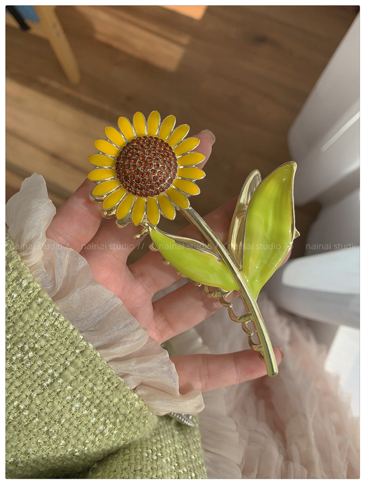 向日葵抓夹~金属发爪森系大号鲨鱼夹感镶钻发夹发饰