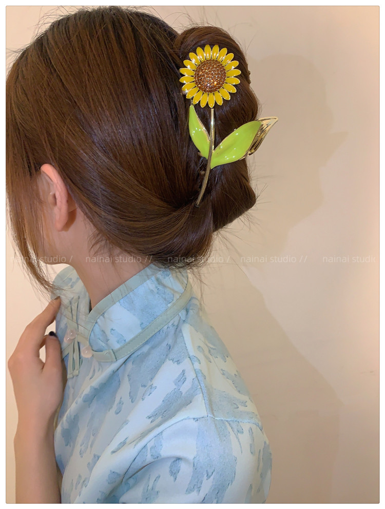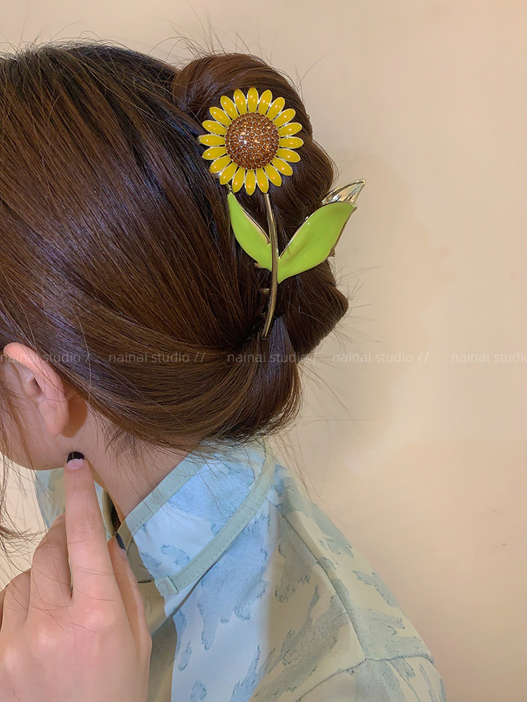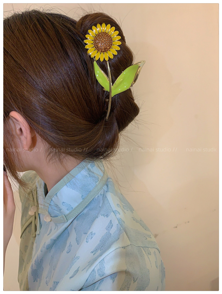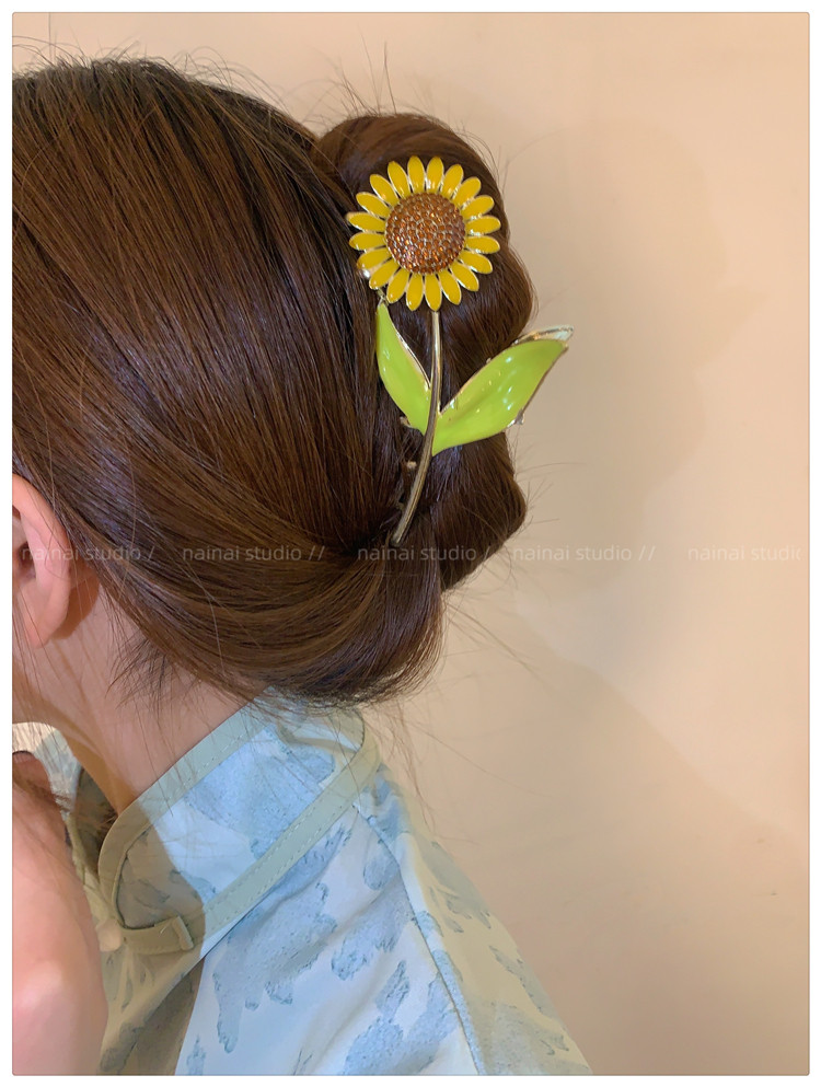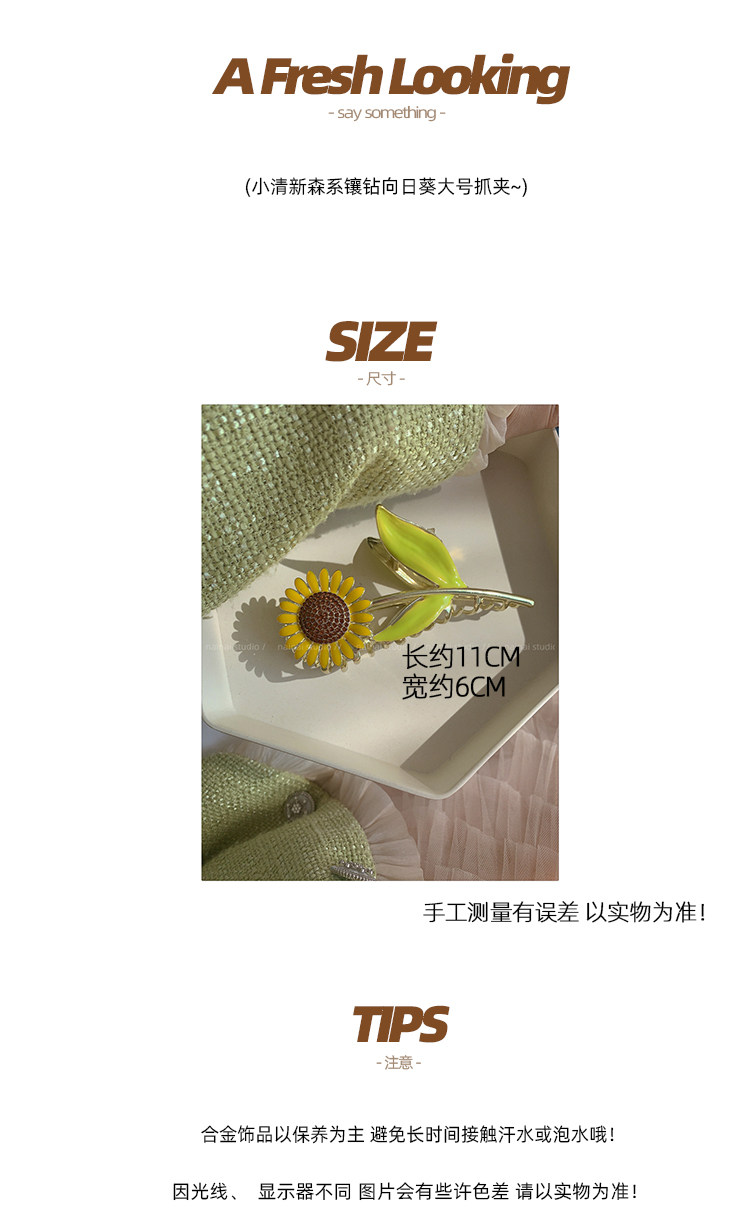 向日葵抓夹~金属发爪森系大号鲨鱼夹感镶钻发夹发饰
