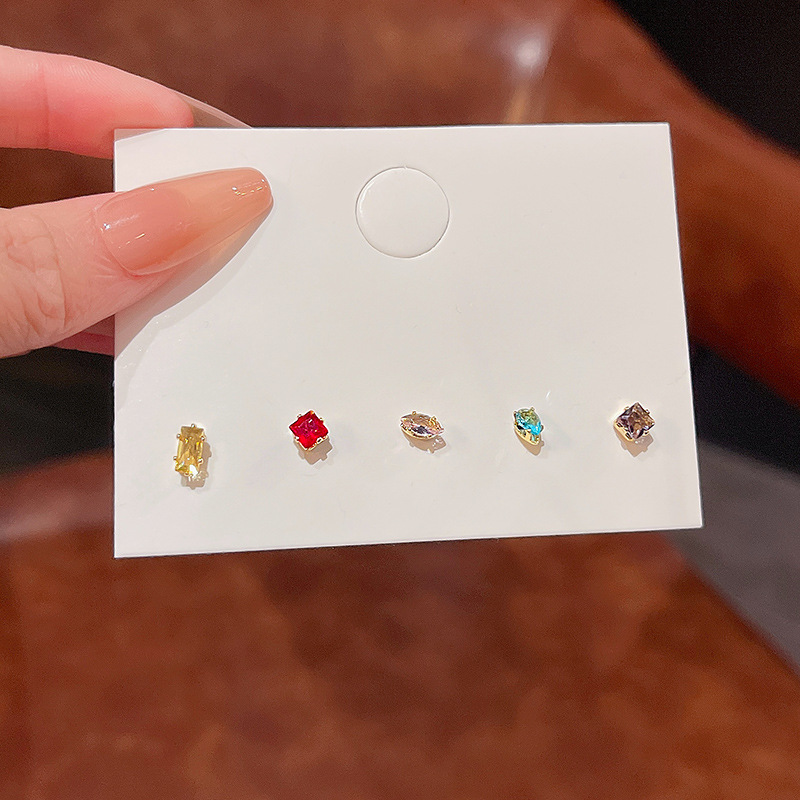 S925银针百搭简约五件套耳环耳饰品批发超仙气质彩色锆石小耳钉