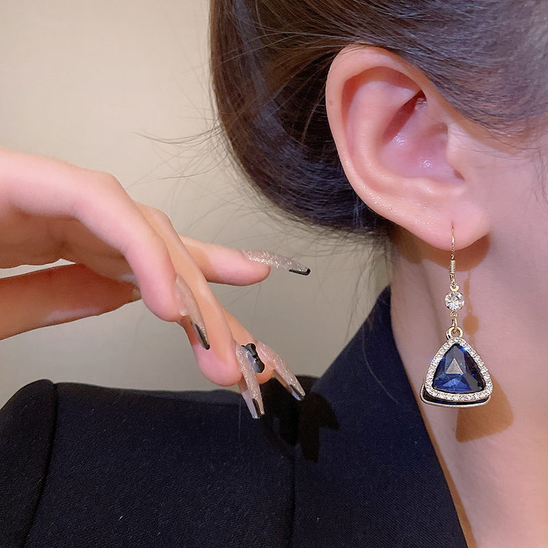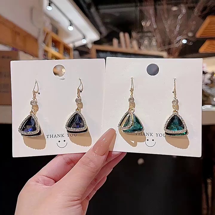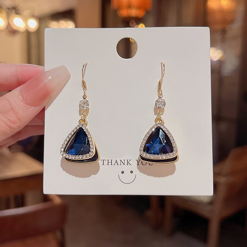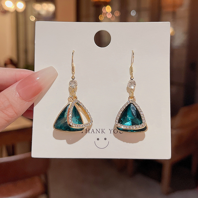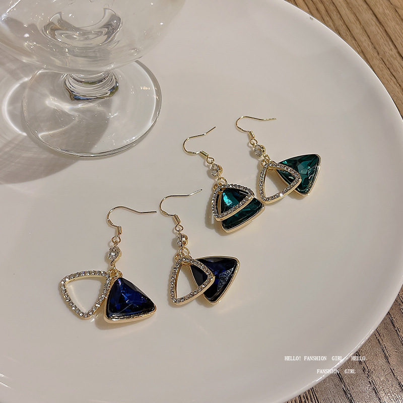 S925银针ins潮法式复古百搭气质耳钉网红同款几何形水晶耳环女