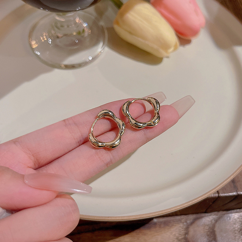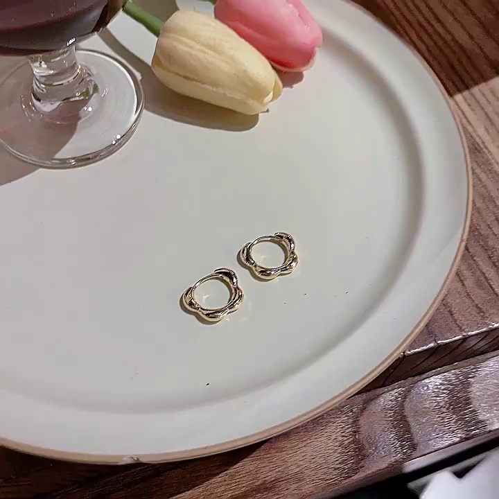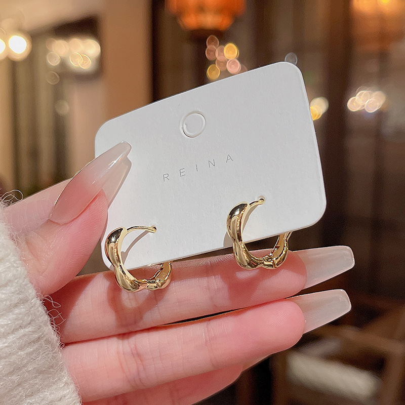 S925银针耳扣轻奢小众港风耳钉耳饰品网红同款简约百搭素圈耳环女