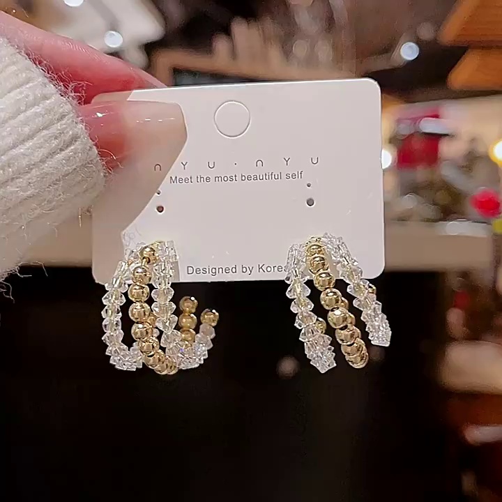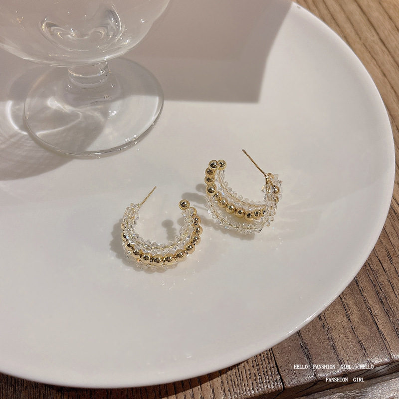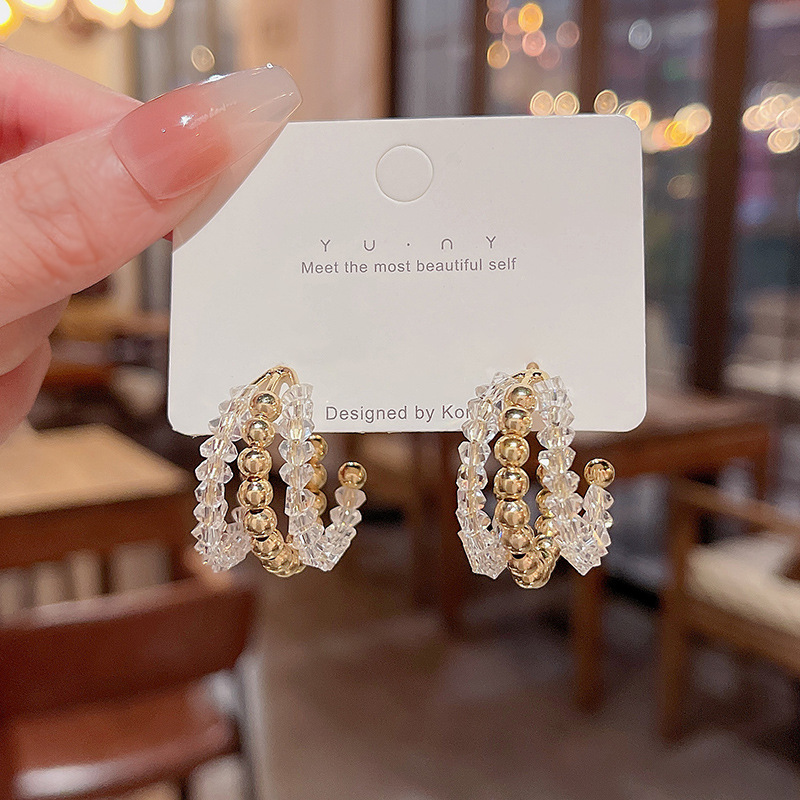 S925银针ins潮网红同款多层百搭气质耳钉耳饰品轻奢小众C形耳环女