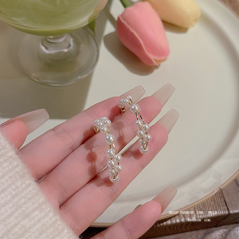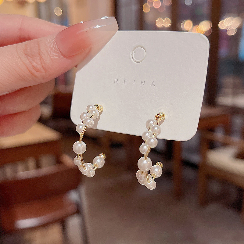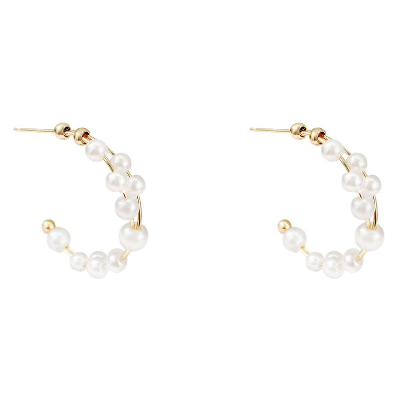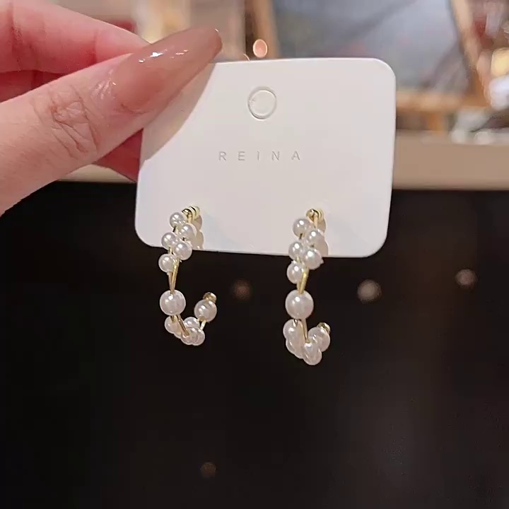 2023年春秋新款轻奢小众百搭气质圆圈耳钉耳饰品小清新珍珠耳环女