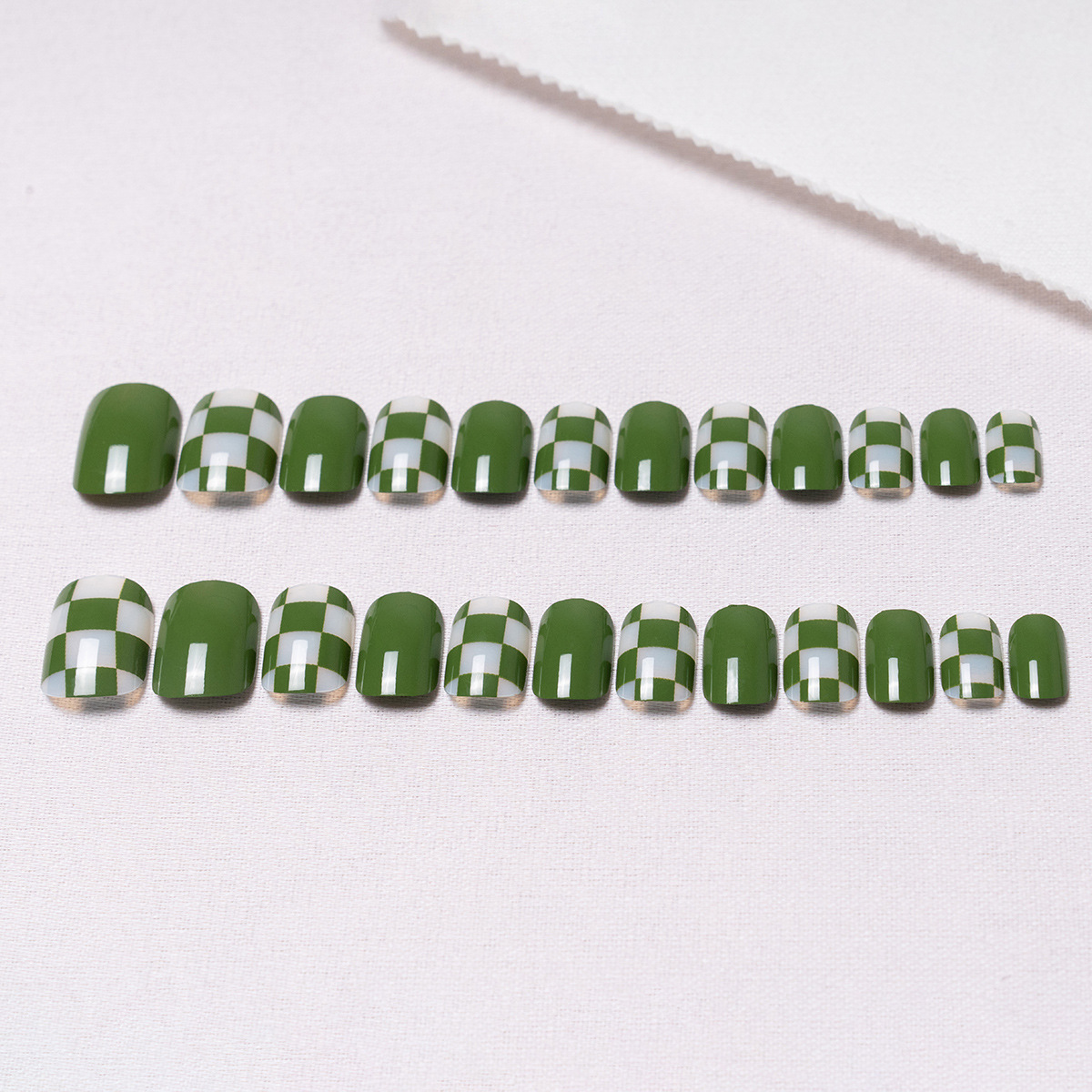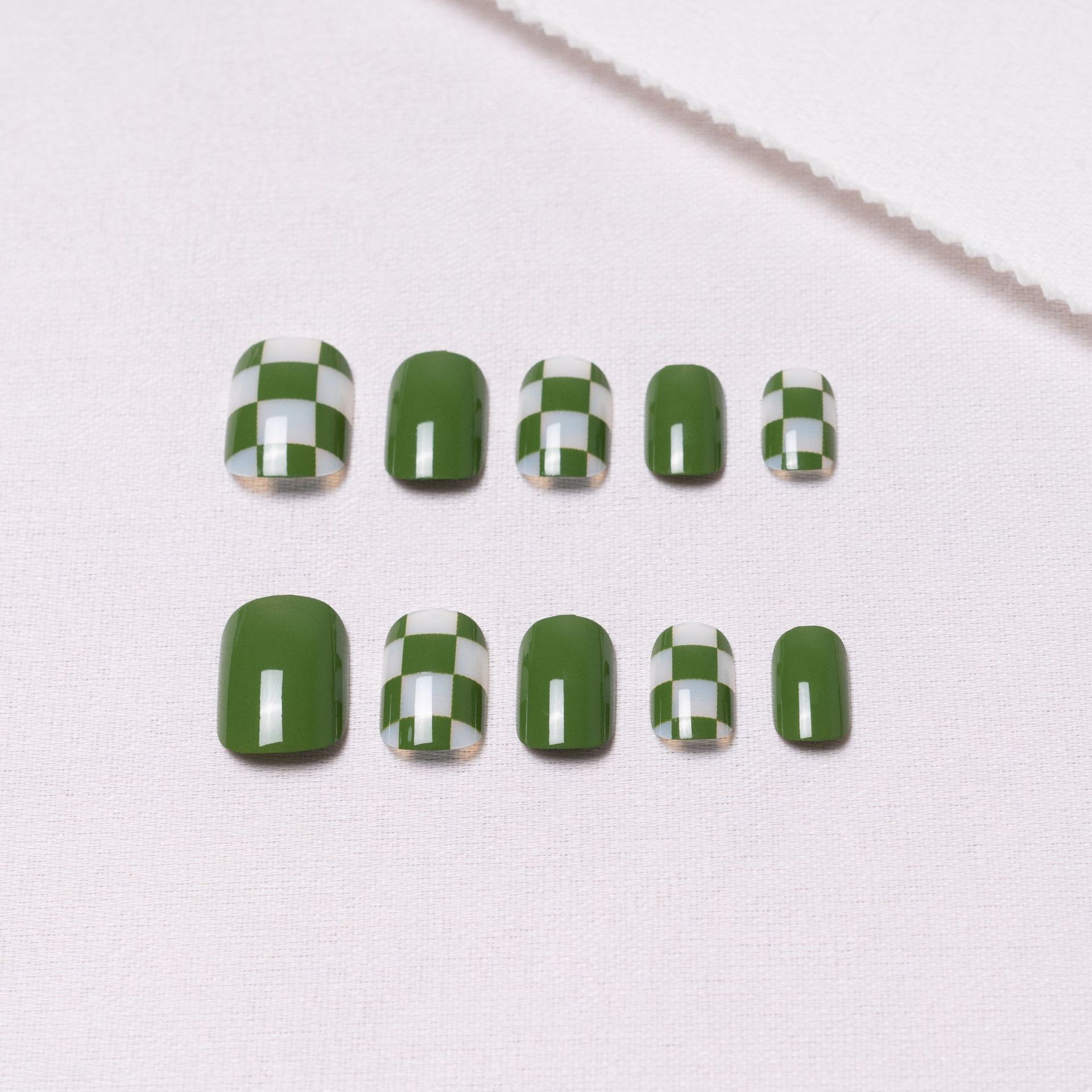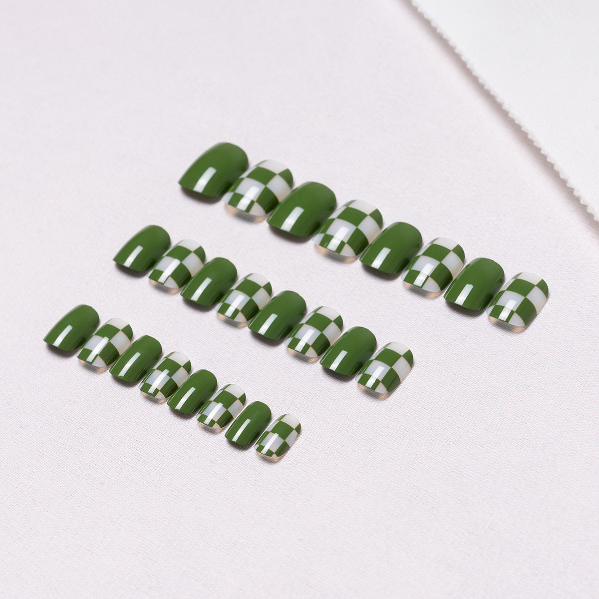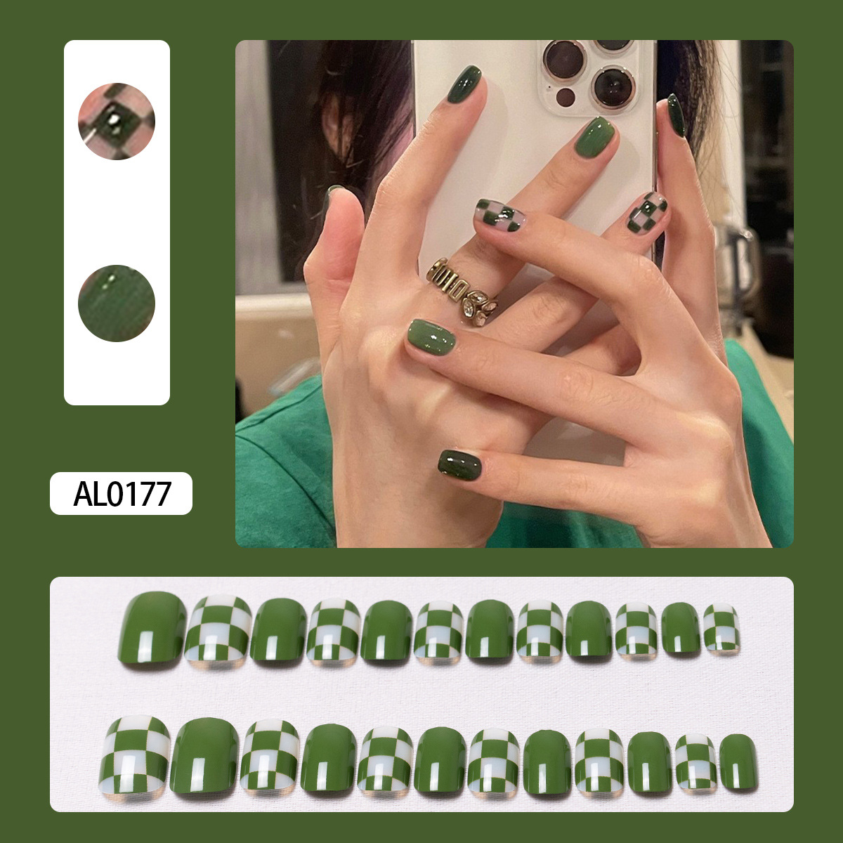 外贸美甲成品棋盘格穿戴甲批发果绿显白指甲贴片夏季小清新甲片