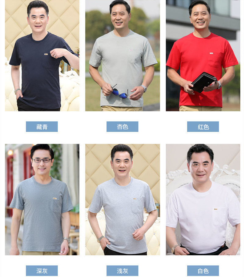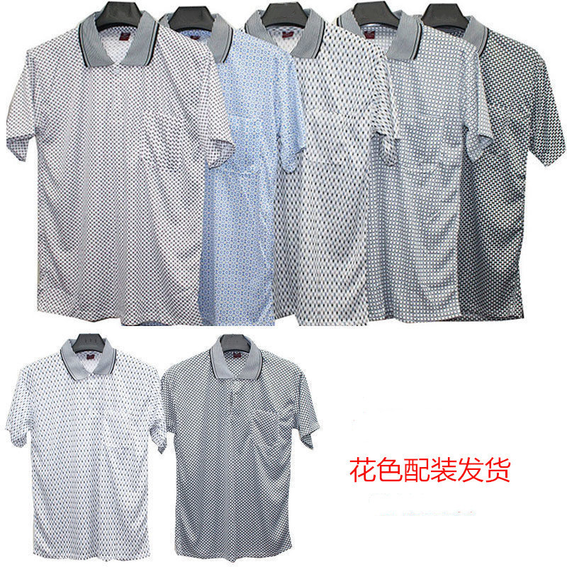 夏季中老年男士短袖T恤 面料:棉类混纺 尺码:52、54两个尺码 颜色:花色多样,颜色配装发货